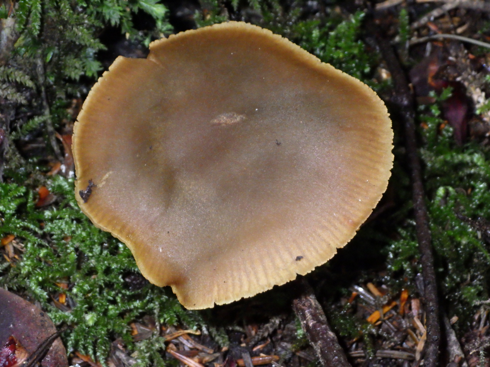 7) Ein grosser flacher Hutpilz mit wenig braunen Lamellen, ein Schnitzling?