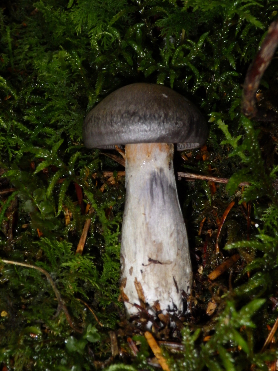 10) Ein kräftiger Pilz mit dickem Stiel , dunkelbraungrauem eingerolltem Hut und gedeutetem Ring > eine Schleimkopf Spec.?
