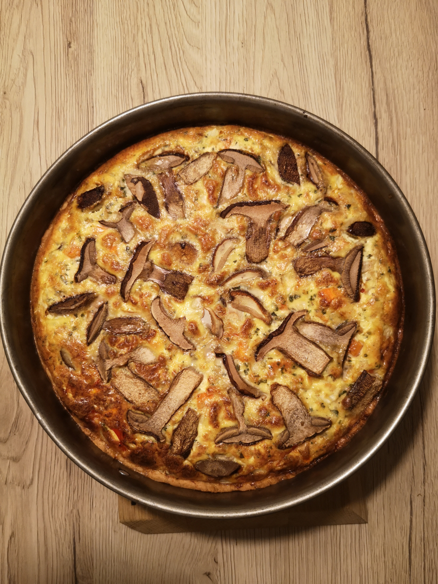 Die Trompetenpfifferlinge wurden eingefroren, die anderen zu einer Quiche verarbeitet.