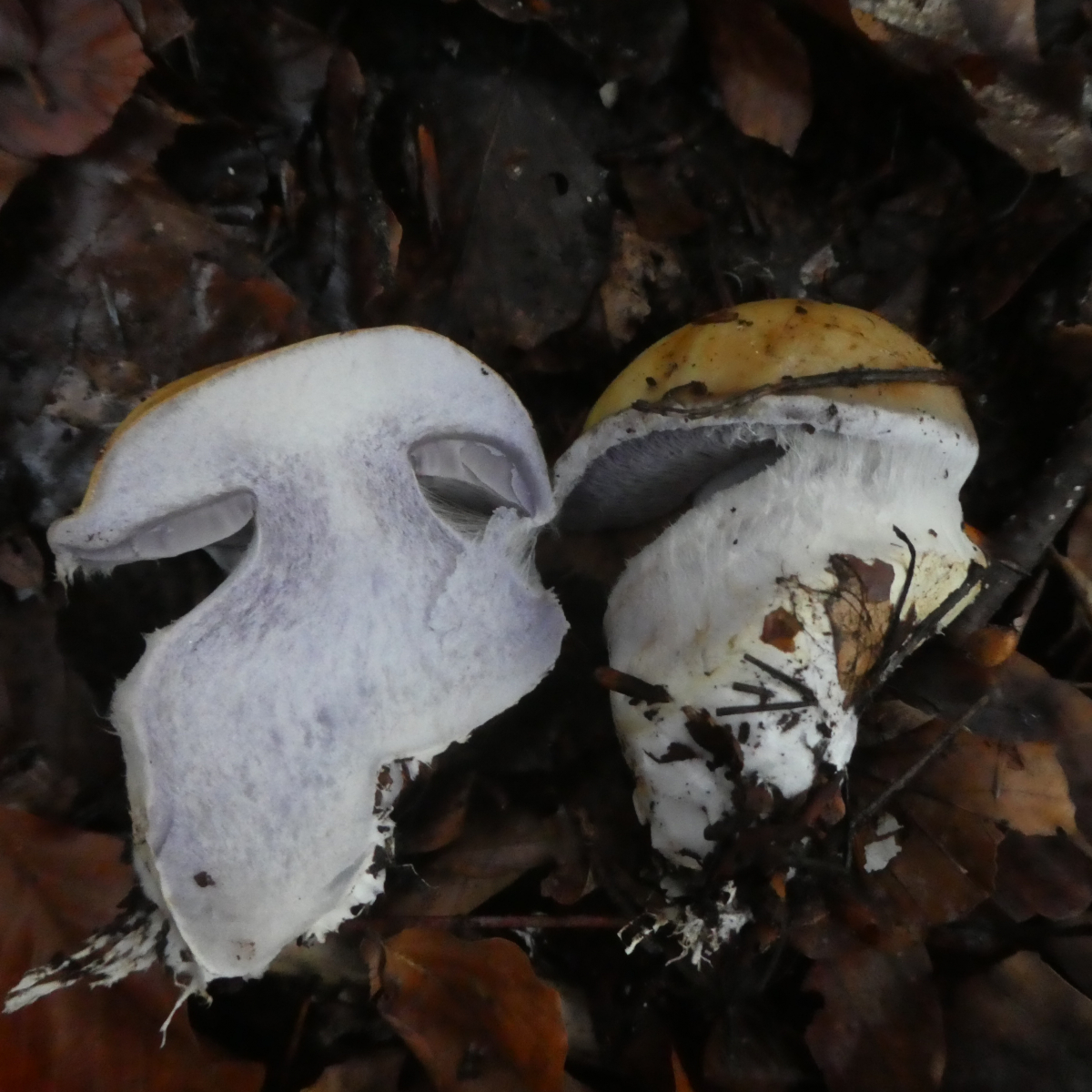 Diesen Pilz hatte ich am 16.10.2019 im Altmühltal in einem Mischwald mit überwiegend Rotbuchen gefunden. Leider war es schon beinahe dunkel, daher sind viele der Fotos ziemlich schlecht, die besten nachfolgend.