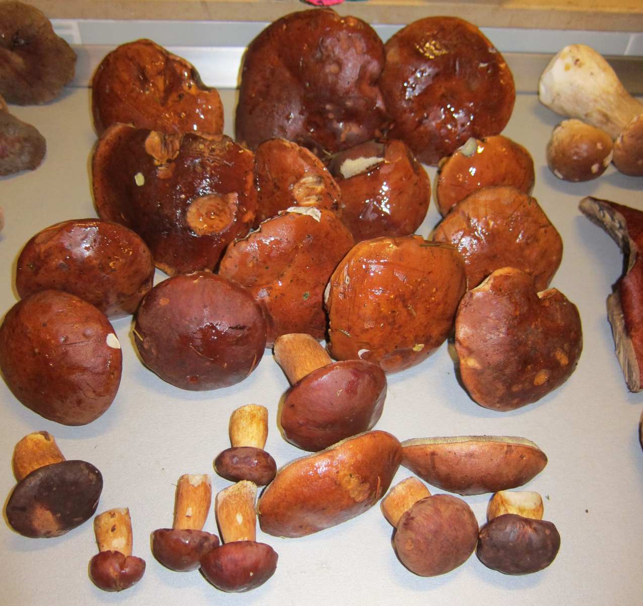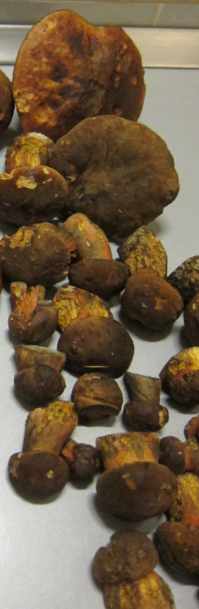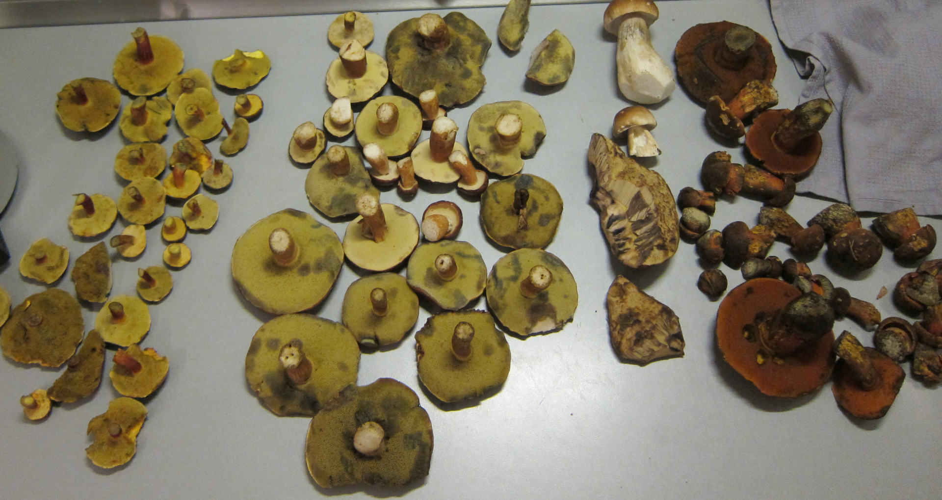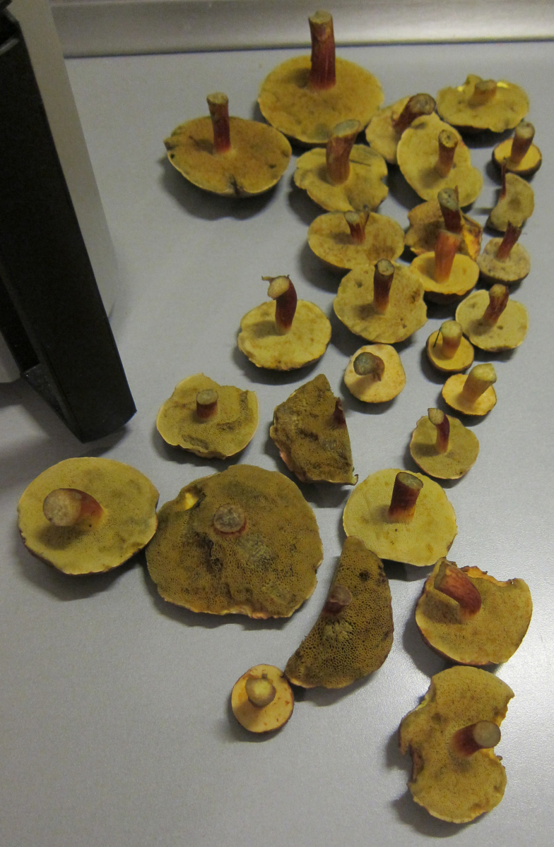 Von den gesammelten Pilzen sind natürlich einige nach dem Durchschneiden in den Kompost gewandert.