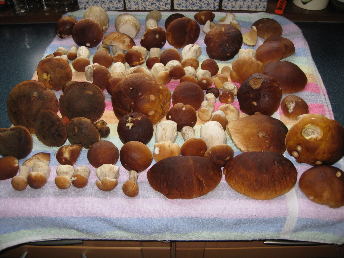 Ich war das ganze Wochenende los und war heute ziemlich groggi, als der Wecker zur Arbeit rief,würd sagen etwas übertrieben beim Pilze schleppen :shy:Zur aktuellen Pilzsituation kann ich sagen recht gut : Viele,sehr viele Steinpilze und auch schon deutlich mehr Madenfreie,kleine kamen auch zur genüge nach.