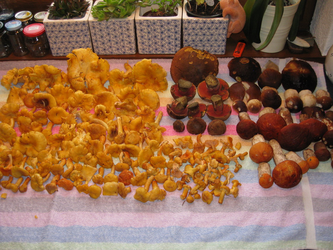 Die Bilder kommen später, heute auch mit Rotkappen (Eichen- und Espenrotkappen) sowie die unvermeidlichen Pfifferlinge - die immer noch nachwachsen! Sehr schöne Steinpilze waren auch dabei.