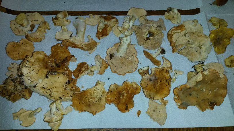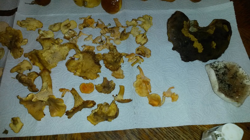 Bis dahin begnügen wir uns nach längerer Pause mal mit einem Pfifferlingspfännchen und versuchen nochmal die Pfifferlinge zu trocknen. Wir haben bereits ein paar starkriechende Pfifferlinge oder Trompetenpfifferlinge mit gutem Erfolg getrocknet, was ja ein sehr gutes Pilzpulver geben soll.Mal sehen, ob es morgen nicht vermadeten Nachwuchs bei den Steinpilzen gibt.