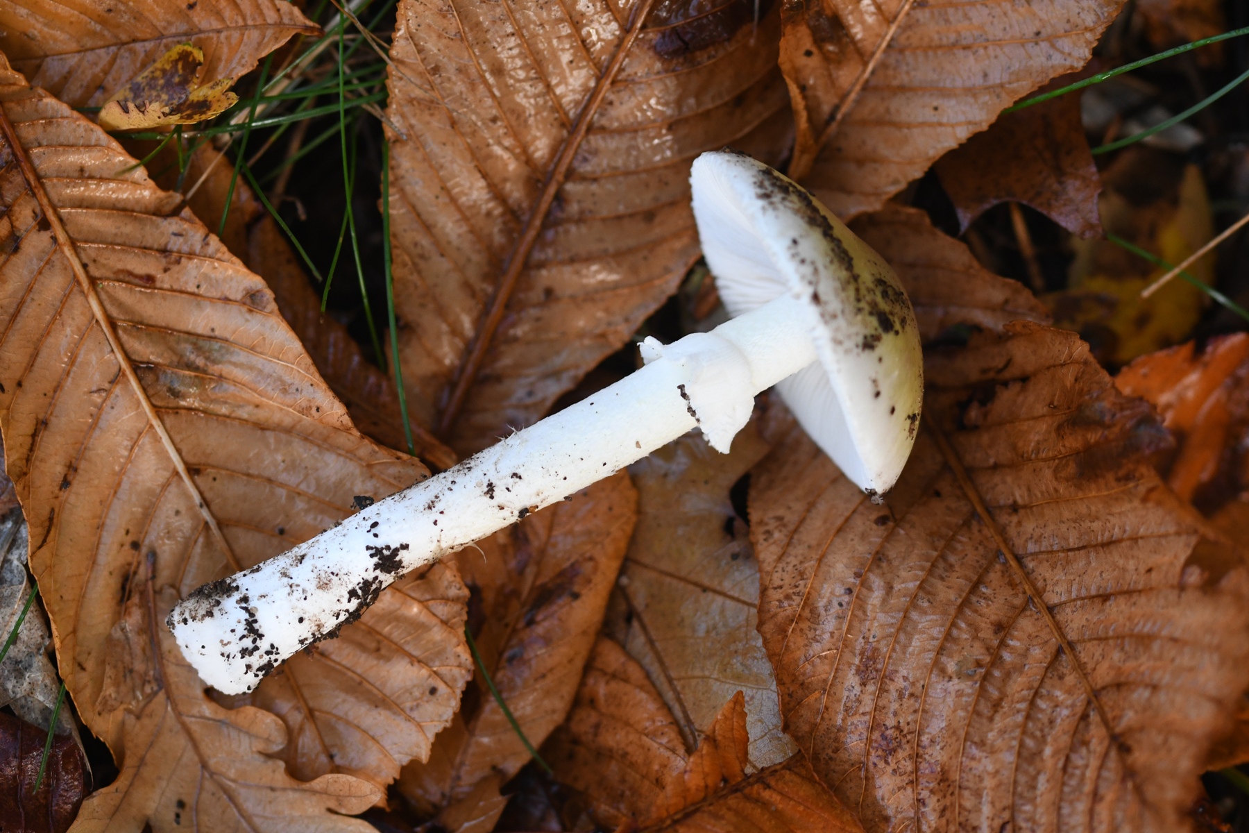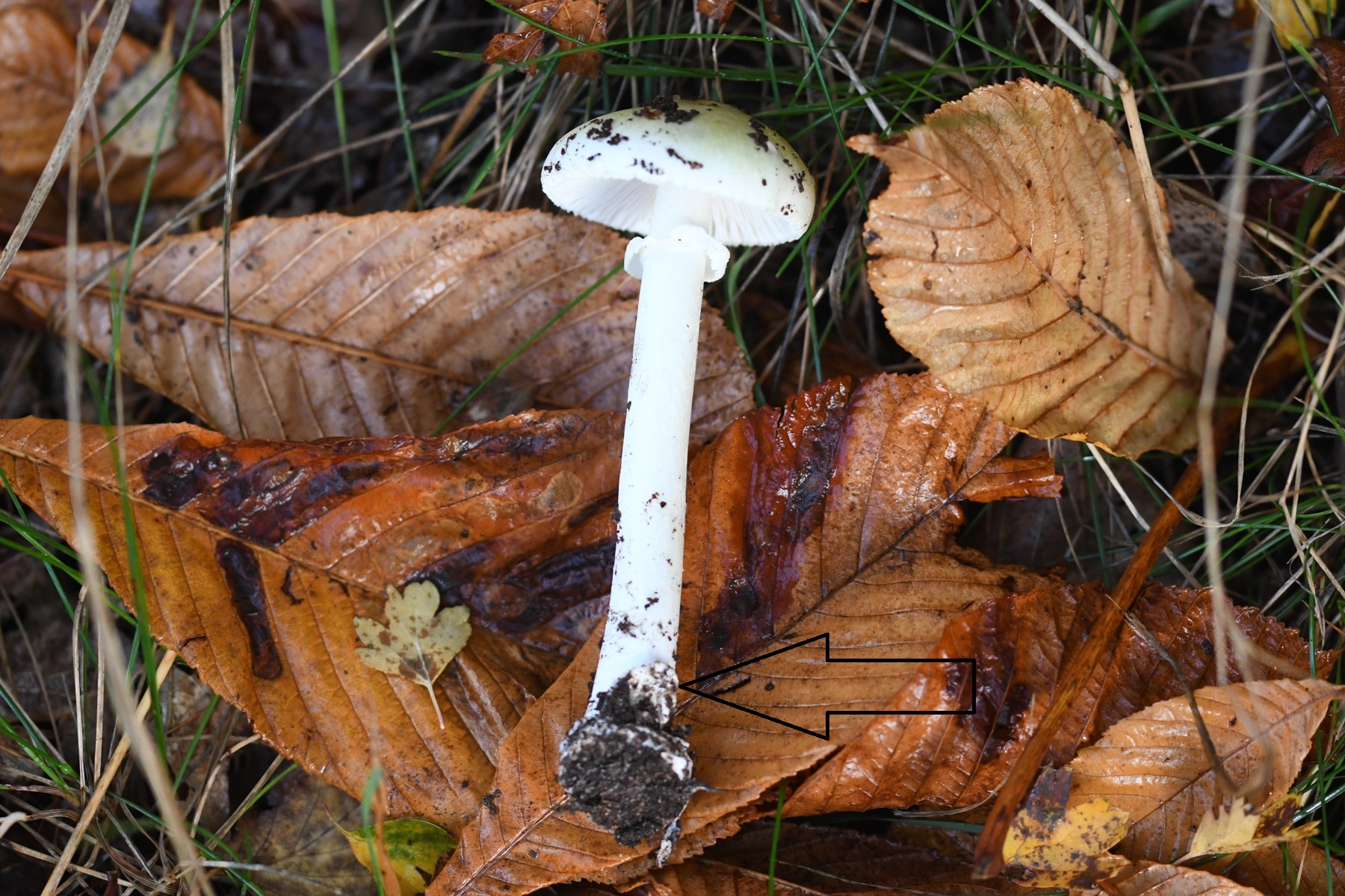 Ich musste schon ziemlich tief in den Boden gehen, um überhaupt etwas von der Knolle mitzubekommen, der Stiel war auch recht brüchig. In der Nähe standen auch A. phalloides (deutlich grün bis grünbräunlich), aber die waren nicht nur von der Farbe, sondern auch vom Habitus ganz anders, und die Knolle mit Velumresten war bei denen sehr auffällig.