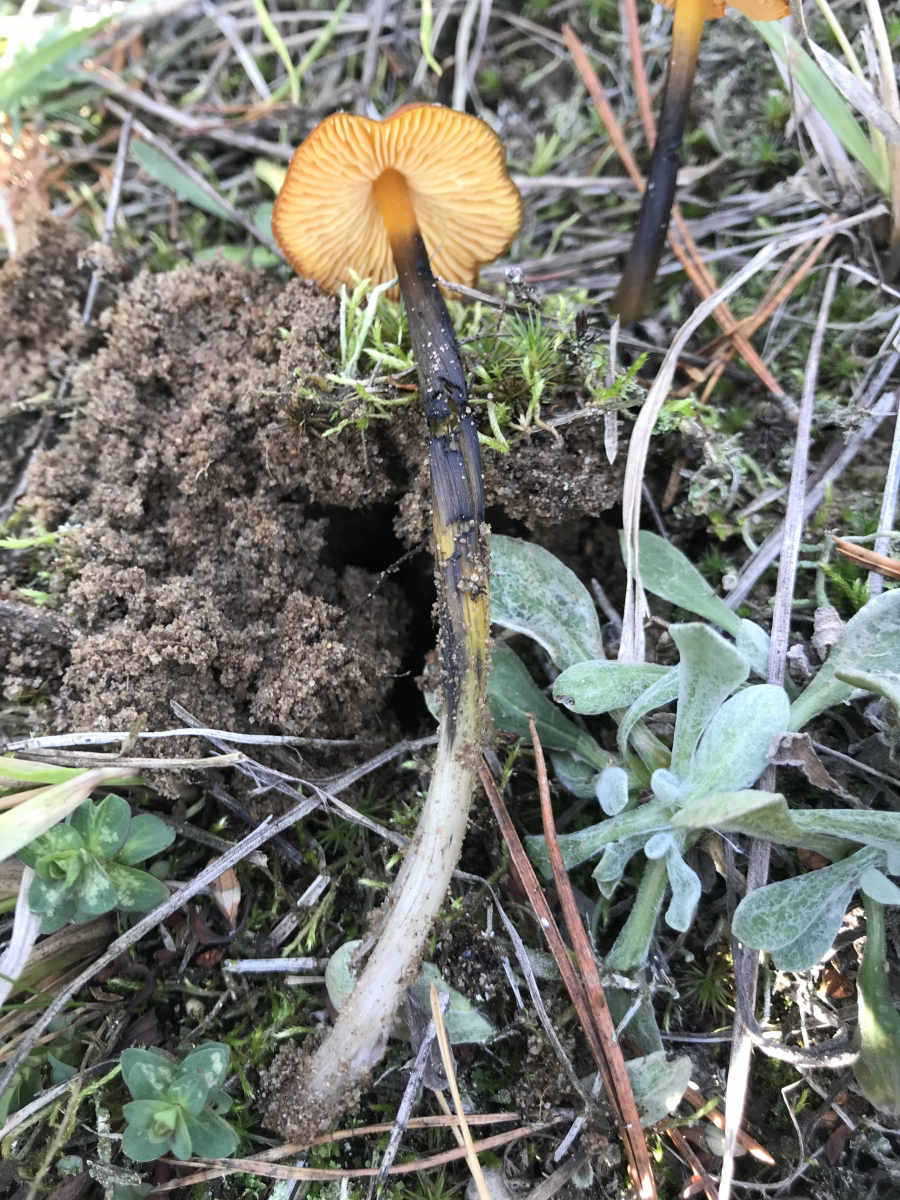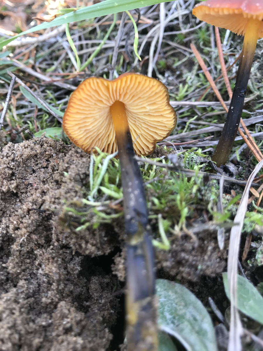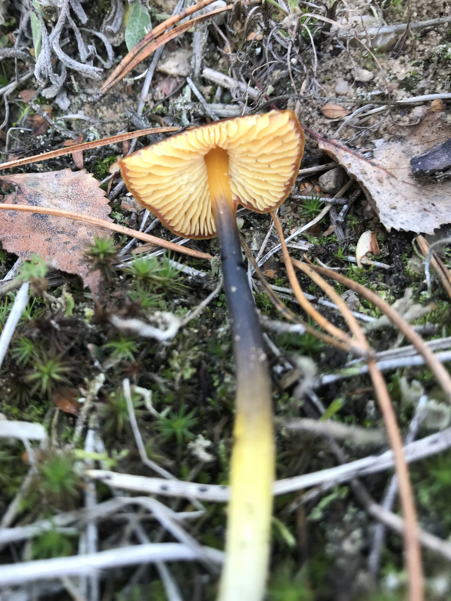 Von oben unscheinbar orange-braun und spitz, war er von den Lamellen her leuchtend gelb orange.