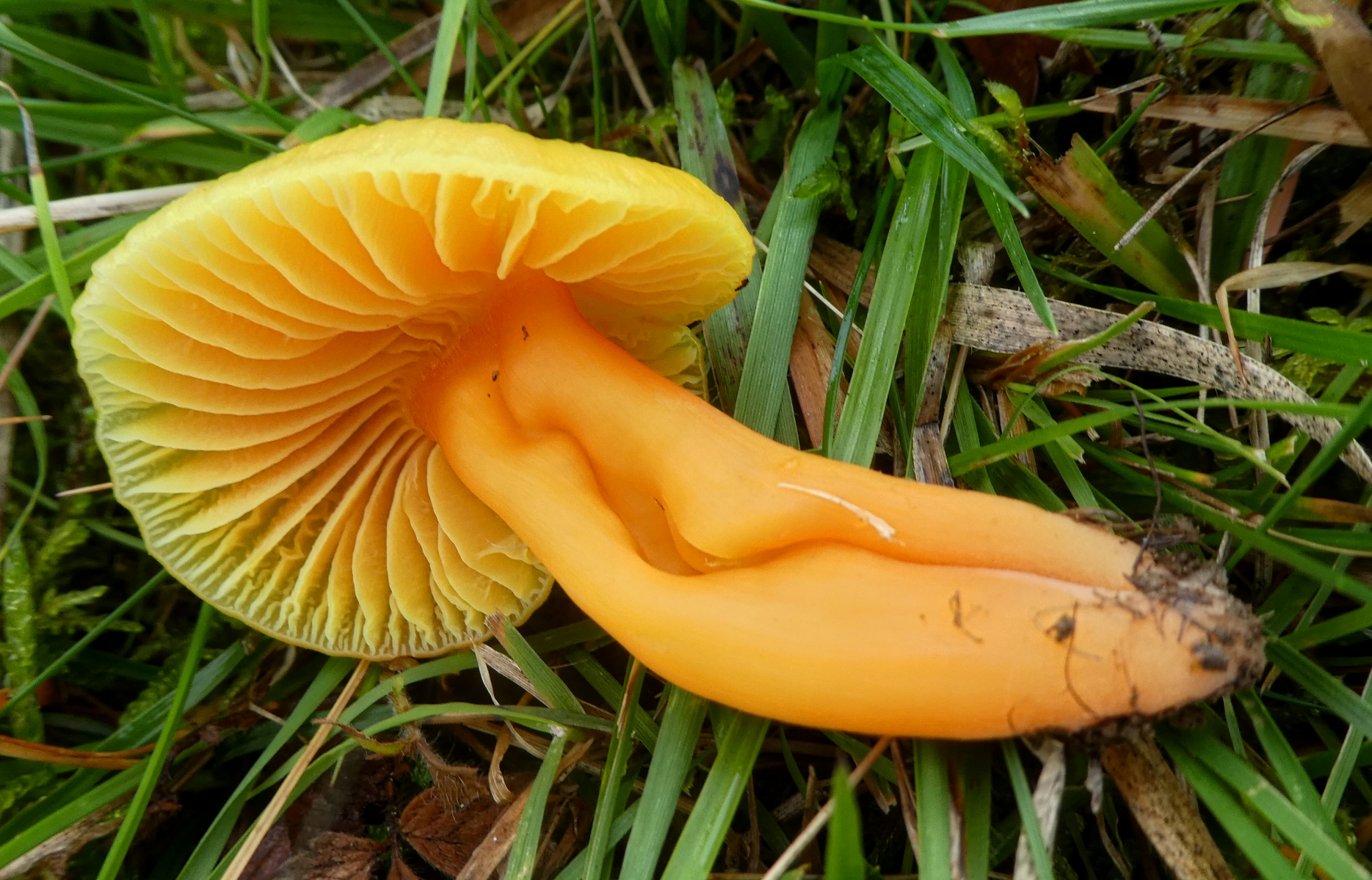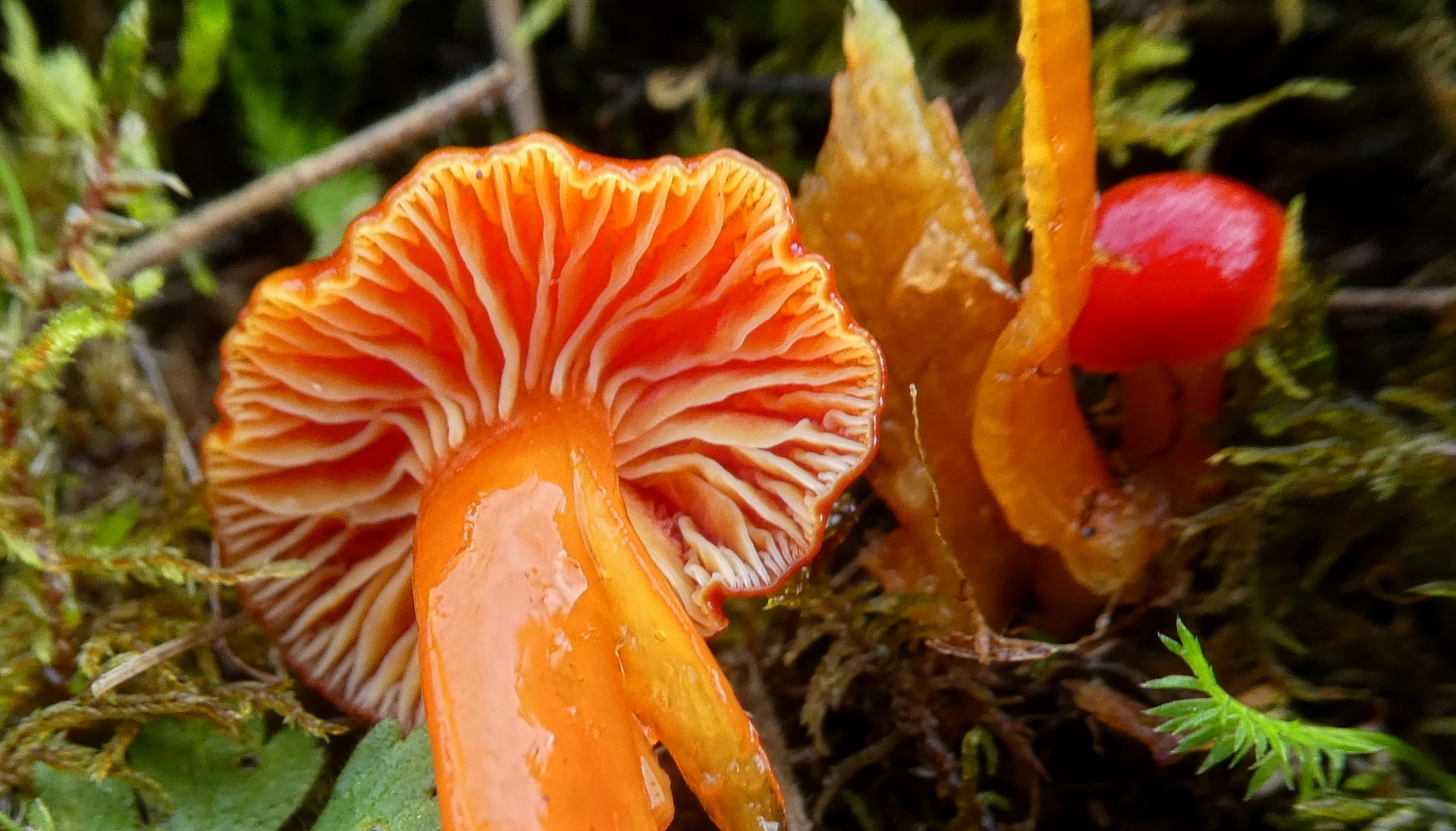 Zunächst bin ich auf Glänzender Orange-Saftling (Hygrocybe aurantiosplendens) gekommen, aber irgendwie passt dies nicht, nur passt auch bei den anderen Saftlingen die ich mir angesehen habe immer irgend etwas nicht.