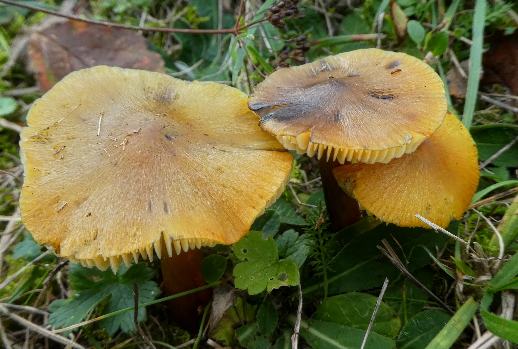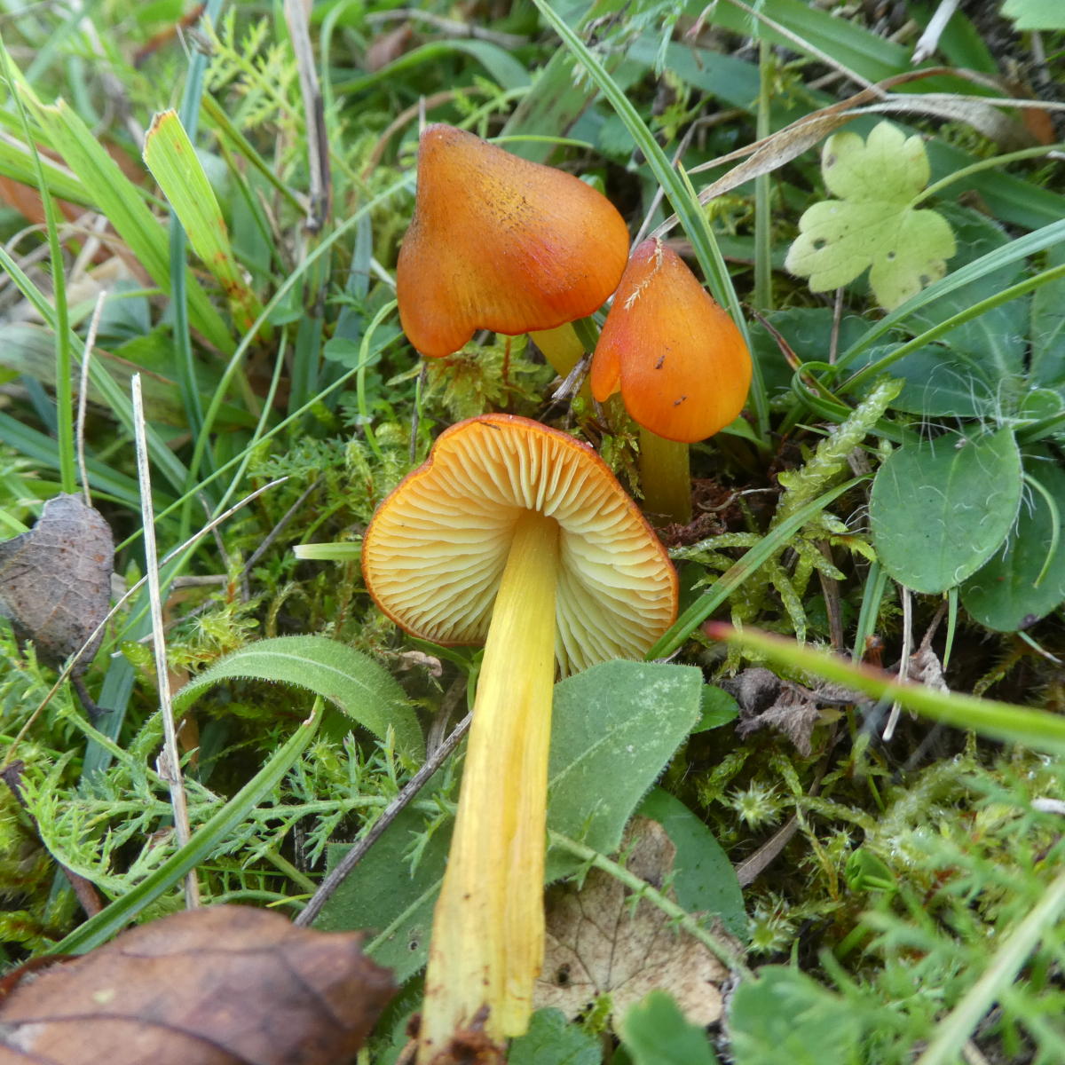 So, dies waren jetzt jede Menge Saftlinge aber mindestens einen weiteren Saftling gab es auch noch reichlich, den Papageigrünen Saftling (Gliophorus psittacinus). Aber zu dem brauche ich glücklicherweise keine Bestimmungshilfe.
