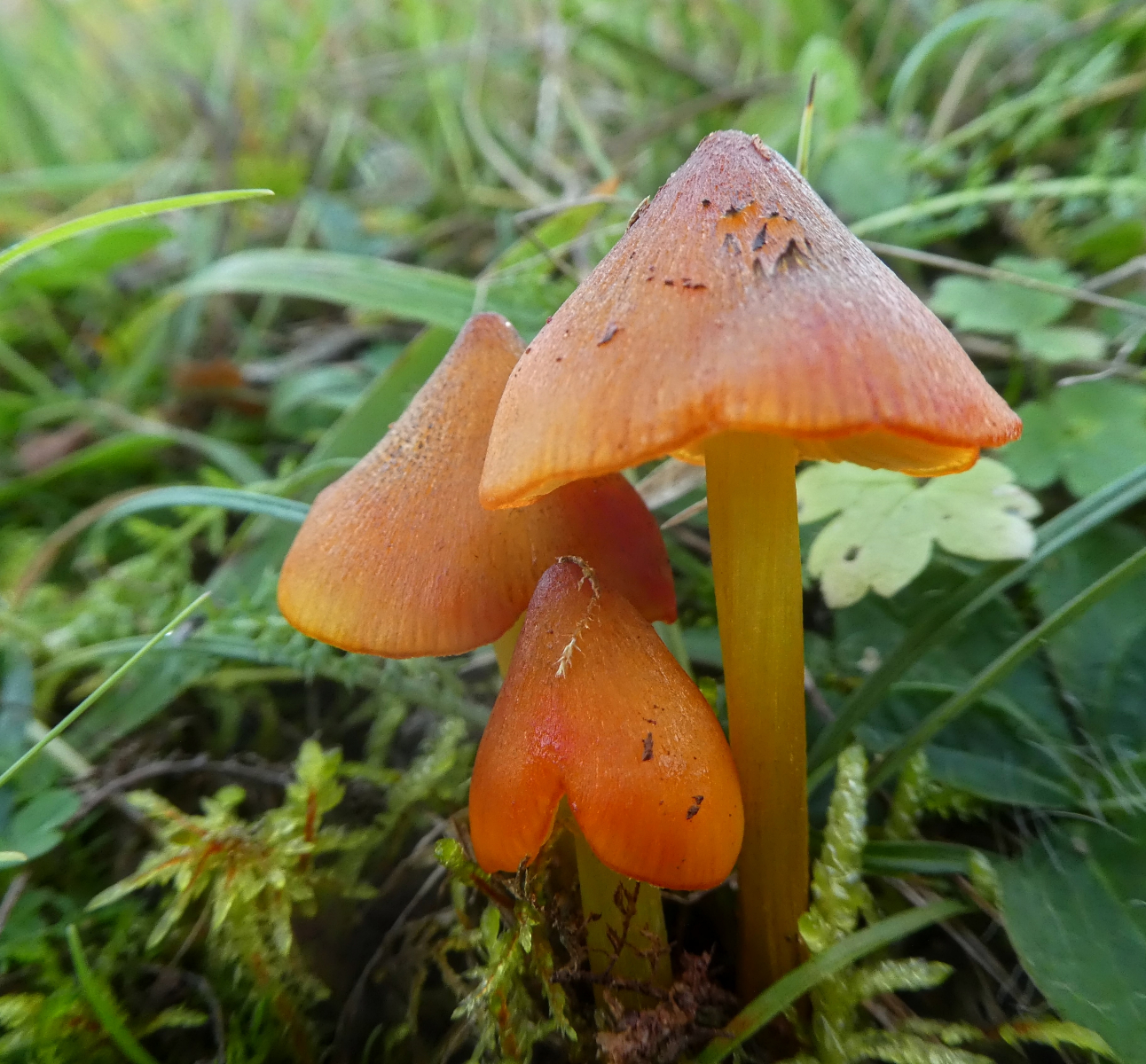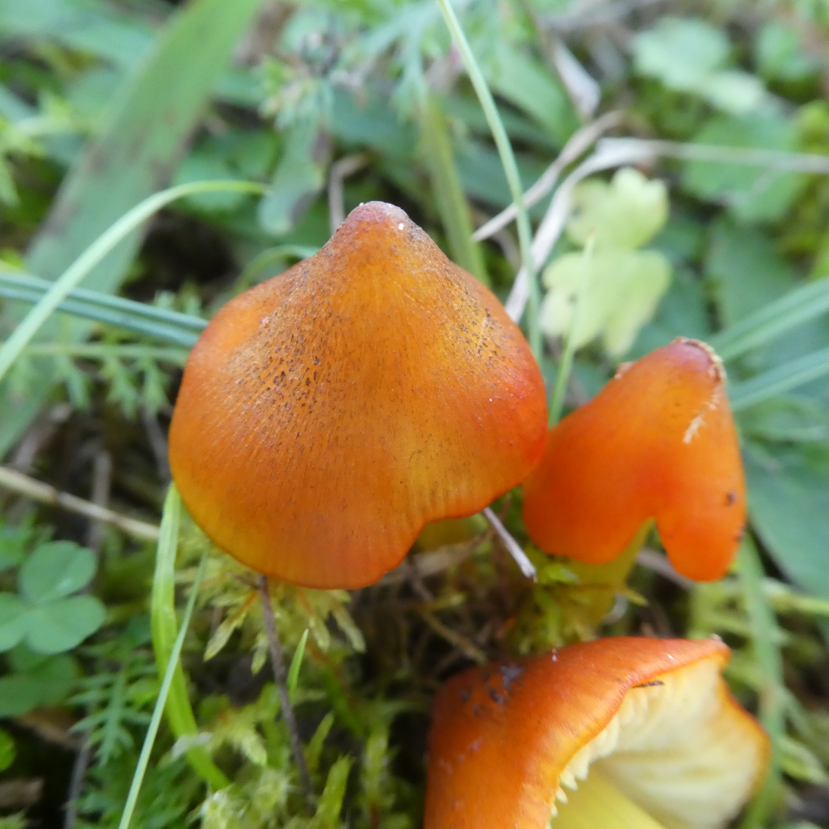 Und diese hier dürften doch dann auch in die Hygrocybe conica Gruppe gehören (Angaben ähnlich der vorherigen Pilze in dieser Gruppe). Kann man da makroskopisch noch weiter kommen?