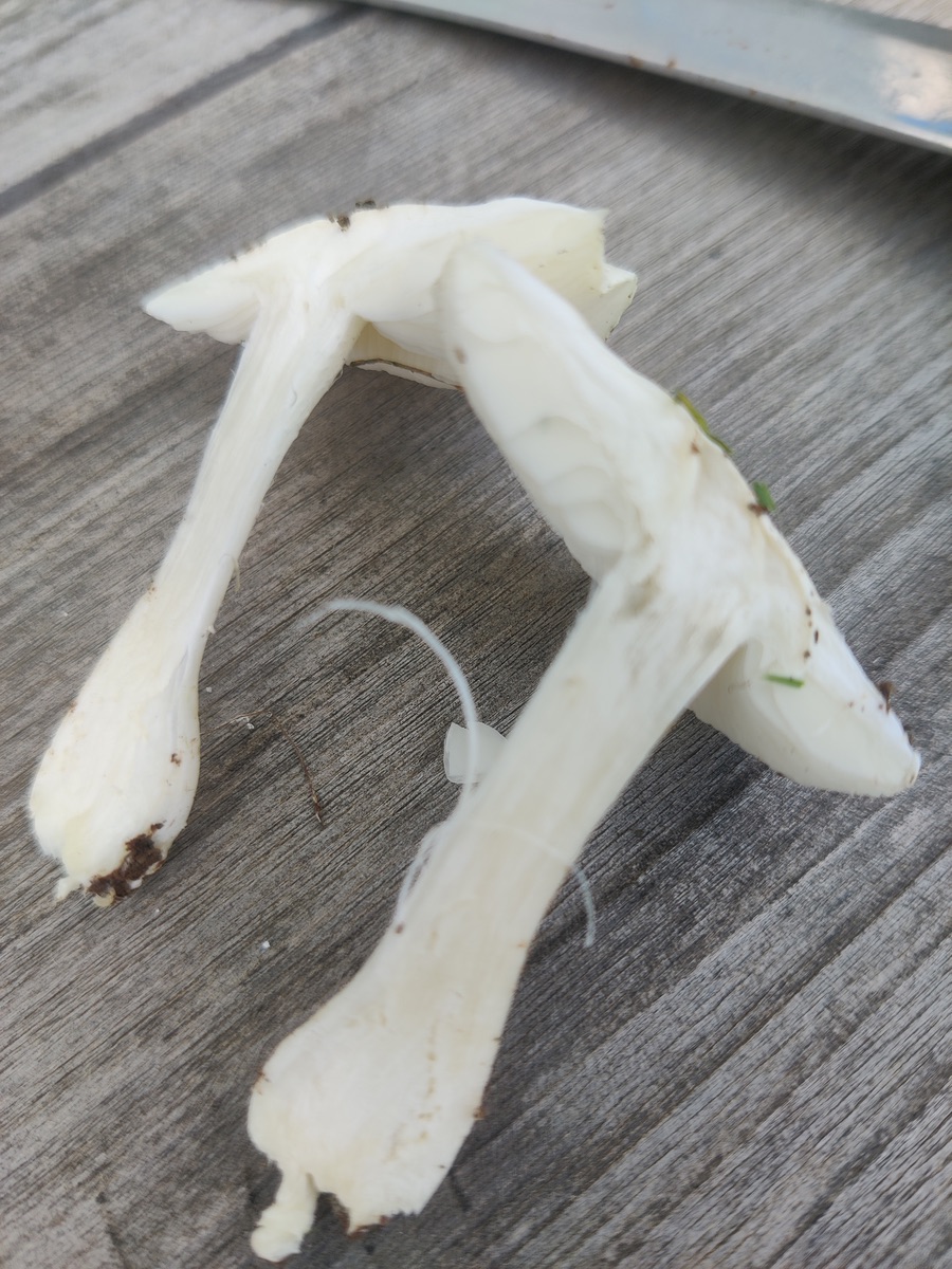 Hut, Stiel, Lamellen alle reinweiß.