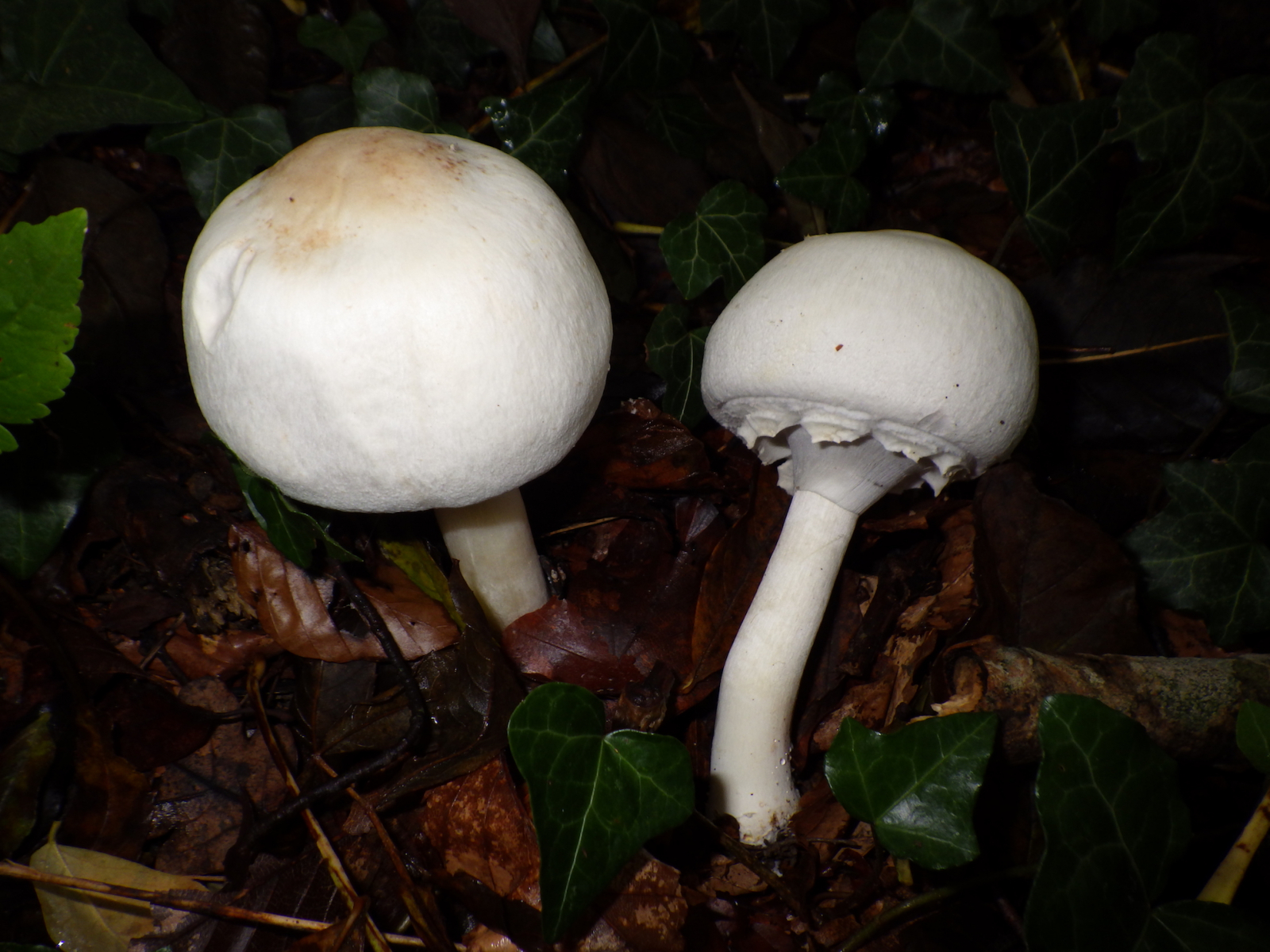2) Anis-Egerlinge: Diese Pilze rochen deutlich nach Anis. Die jungen Pilze waren auch kugelig von ähnlicher Grösse, die Stielbasen jedoch weiss, die Hutschnittflächen wurden nach kurzer Zeit weniger gelbend, man sah jedoch auch wenig gelb, die alten Pilze rochen deutlich nach Anis, die Hüte waren fast gleich gefärbt wie beim Karbol-Egerling. Die Stielbasen waren deutlich knolliger, teilweise auch schrägknollig, aber weiss ohne gelb!