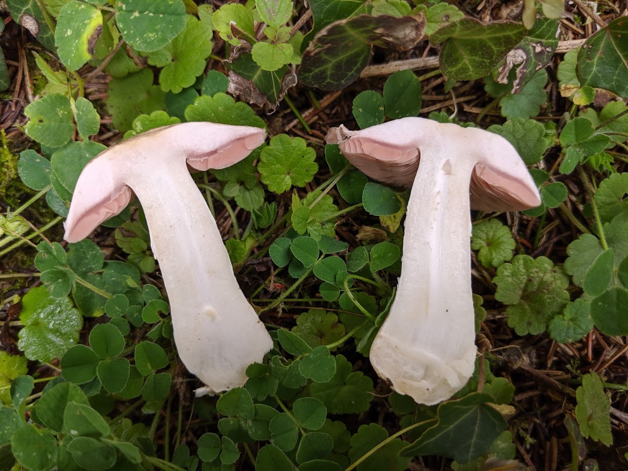 1. Leucoagaricus leucothites, wenn die Lamellen bei dem jungen exemplar reinweiß sind. Ansonsten wäre hier noch ein Agaricus möglich, allerdings müssten die Lamellen bei dem alten Exemplar da schon Brauntöne aufweisen. Ansonsten habe ich zu dem Pilz keine gescheite Idee weiter.