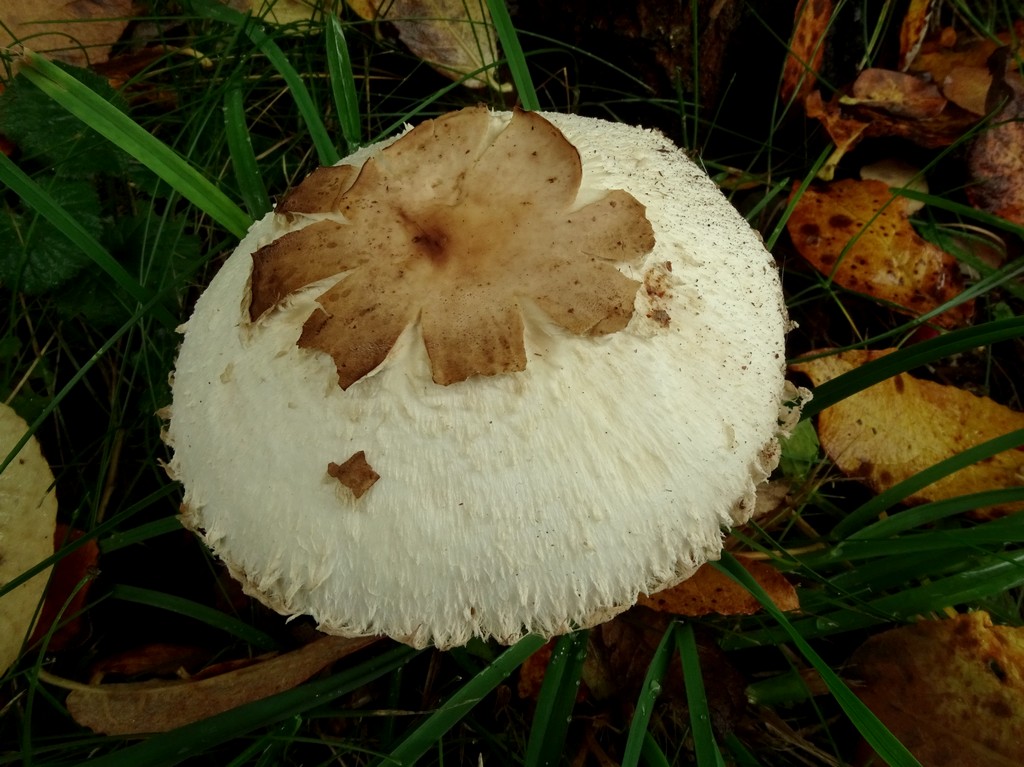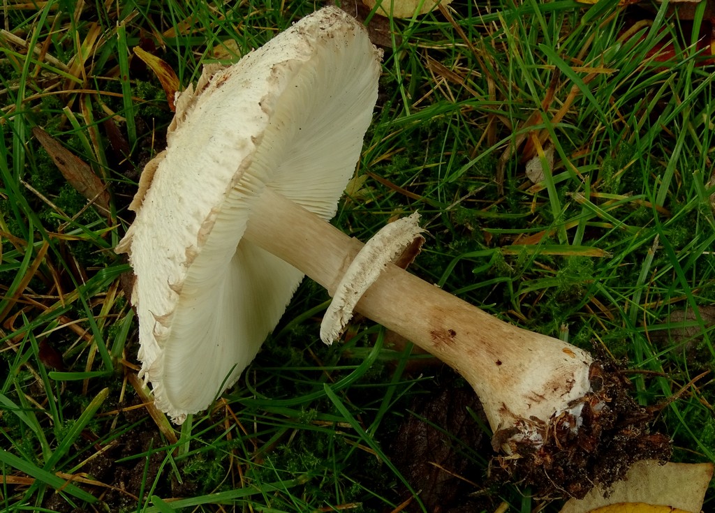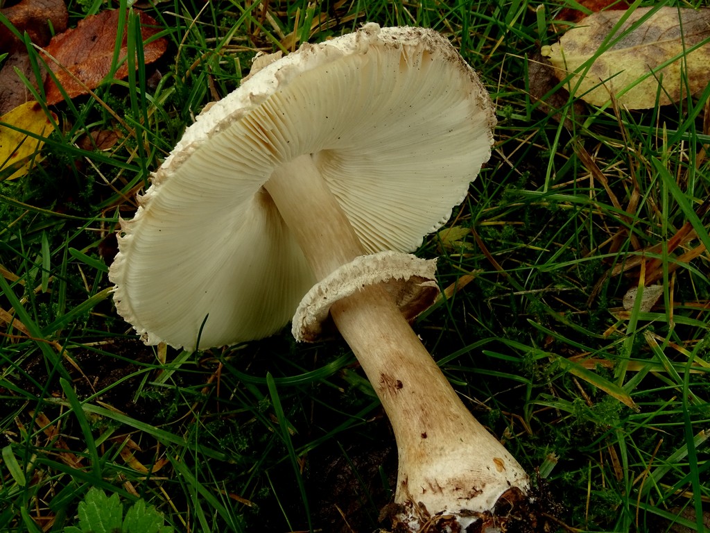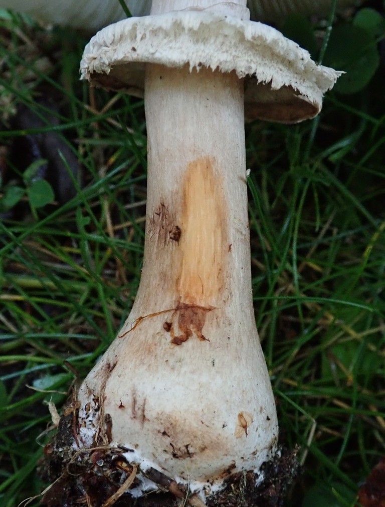 Standort: Rasenfläche in einem städtischen Wohngebiet. Hut 10 cm Durchmesser, Stiel 10 cm hoch. Bei Verletzung (siehe Foto) orange anlaufend.