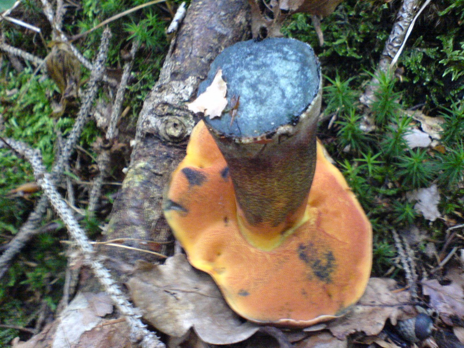 Ausserdem haben wir noch ein weiteres merkwuerdiges Exemplar gefunden, dessen Stiel sich nach dem anschneiden blauschwarz verfaerbt hat. Laut Internet koennte es ein Hexenroehrlich sein, waere der eigentlich essbar gewesen ? Ich meine bei der Farbe ist uns aber gleich der Appetit vergangen ![]()