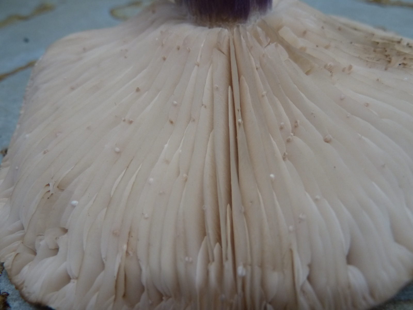 Lepista saeva mit Kügelchen an den Lamellenschneiden