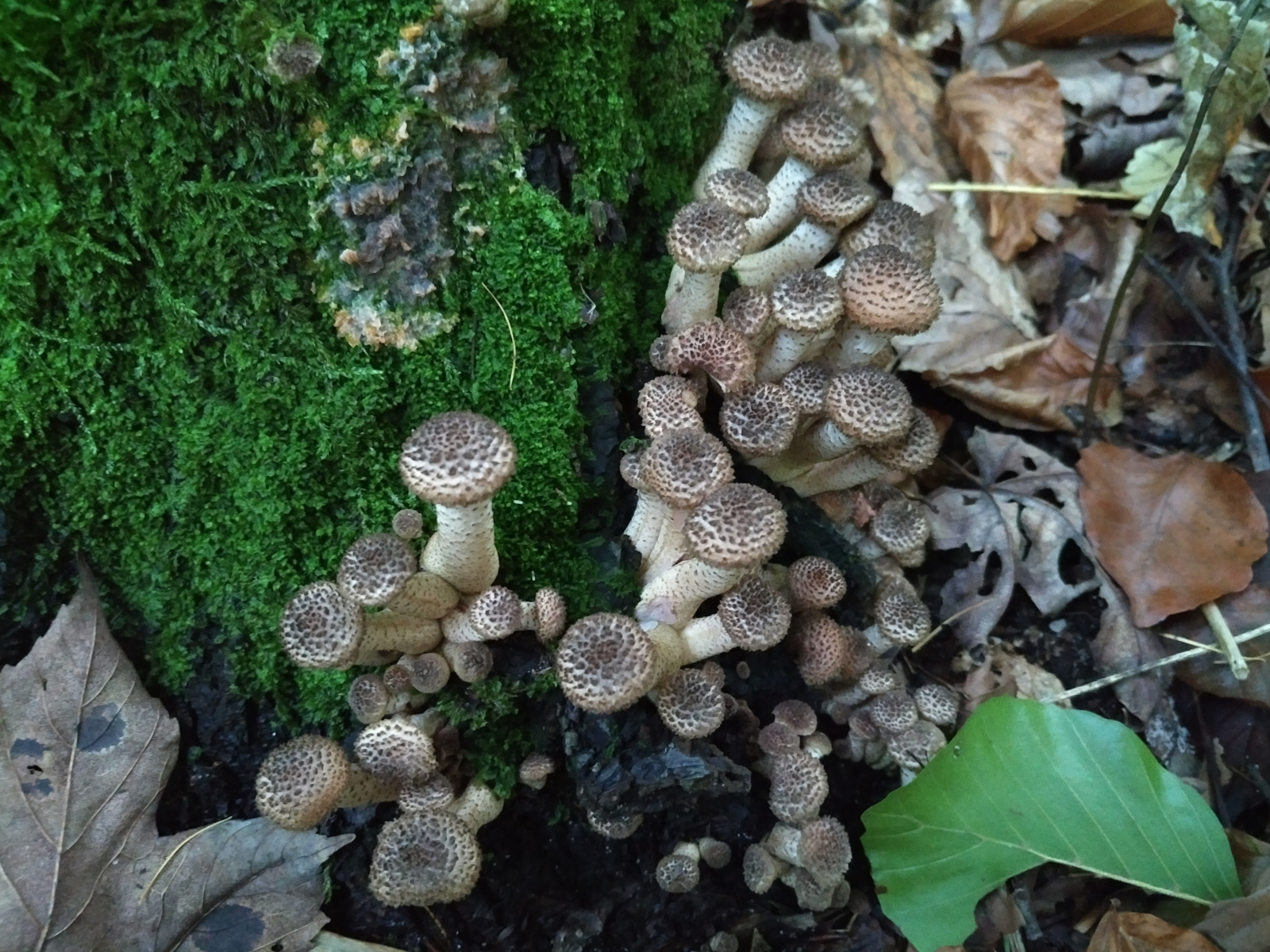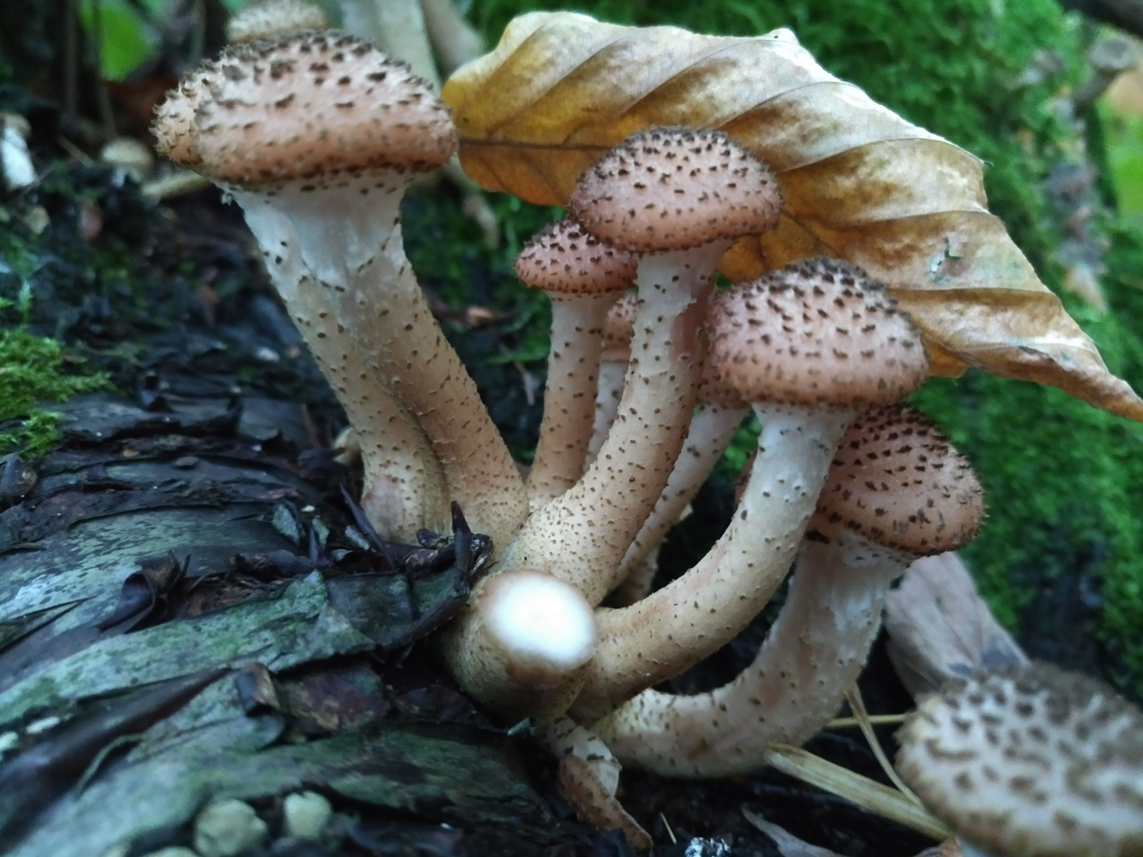 diese Pilze habe ich heute gefunden und sehe in ihnen den dunklen Hallimasch. In unmittelbarer Nähe waren nur Laubbäume und dazwischen ein vermutlicher Nadelholzstumpf, auf dem die Pilze wuchsen. Die Schüppchen sind abwischbar. Kann man Schüpplings-Arten ausschließen? Da die Hüte noch geschlossen sind, kann ich keinen Sporenabdruck machen um die Farbe zu überprüfen. Gibt es sonst noch deutliche Merkmale, welche Schüpplingsarten sicher ausschließen?