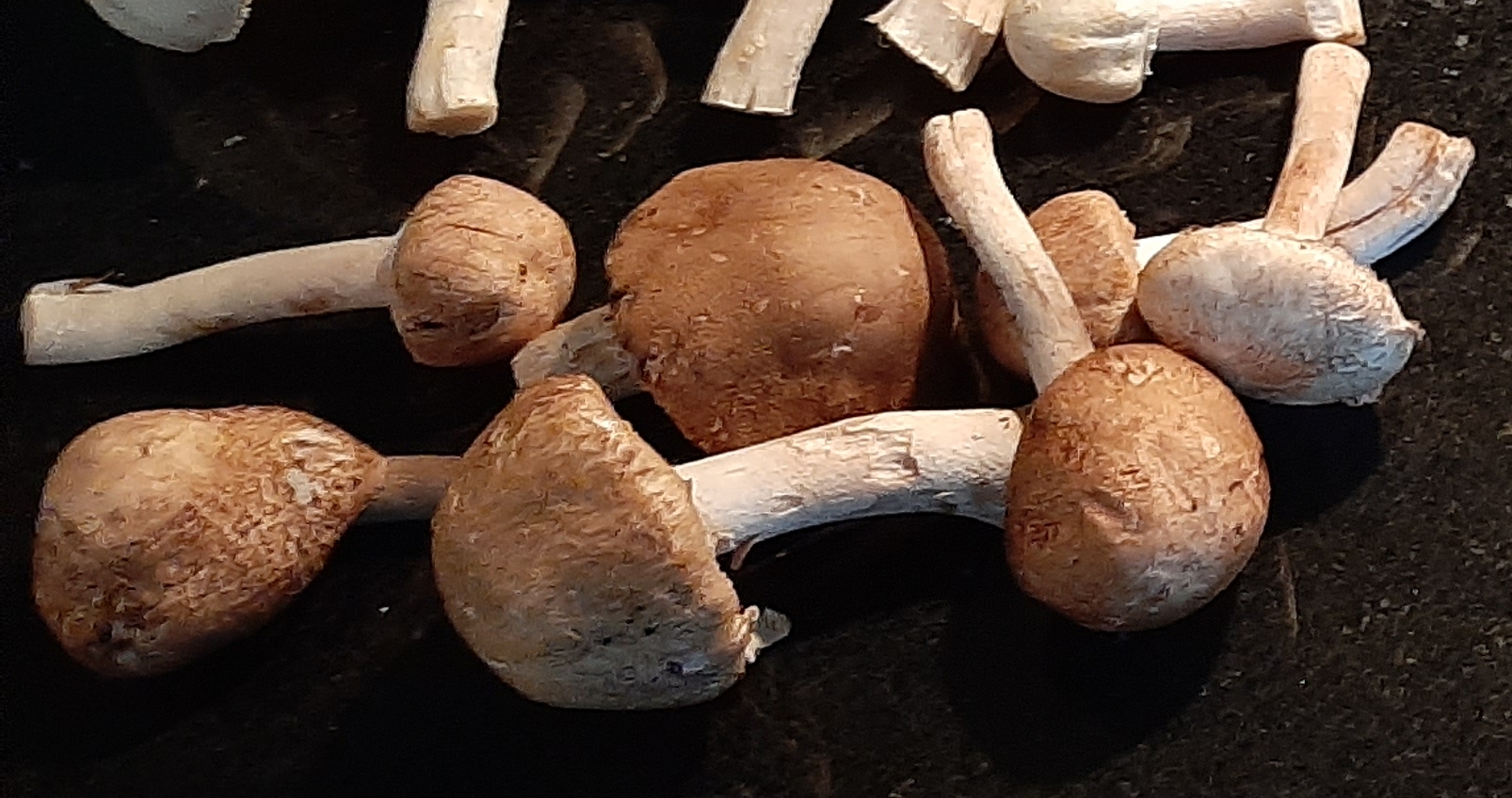 Lamellen: schokobraun, da schon älter, dicht gedrängt,