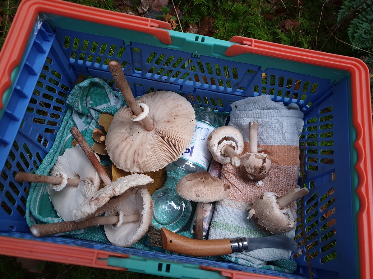 Und dann hatte ich doch noch Sammelerglück und fand etwas tiefer im Wald abseits von den Wegen eine ordentliche Menge Warzen-Schirmlinge...