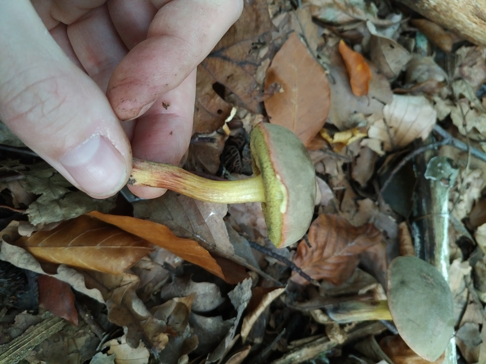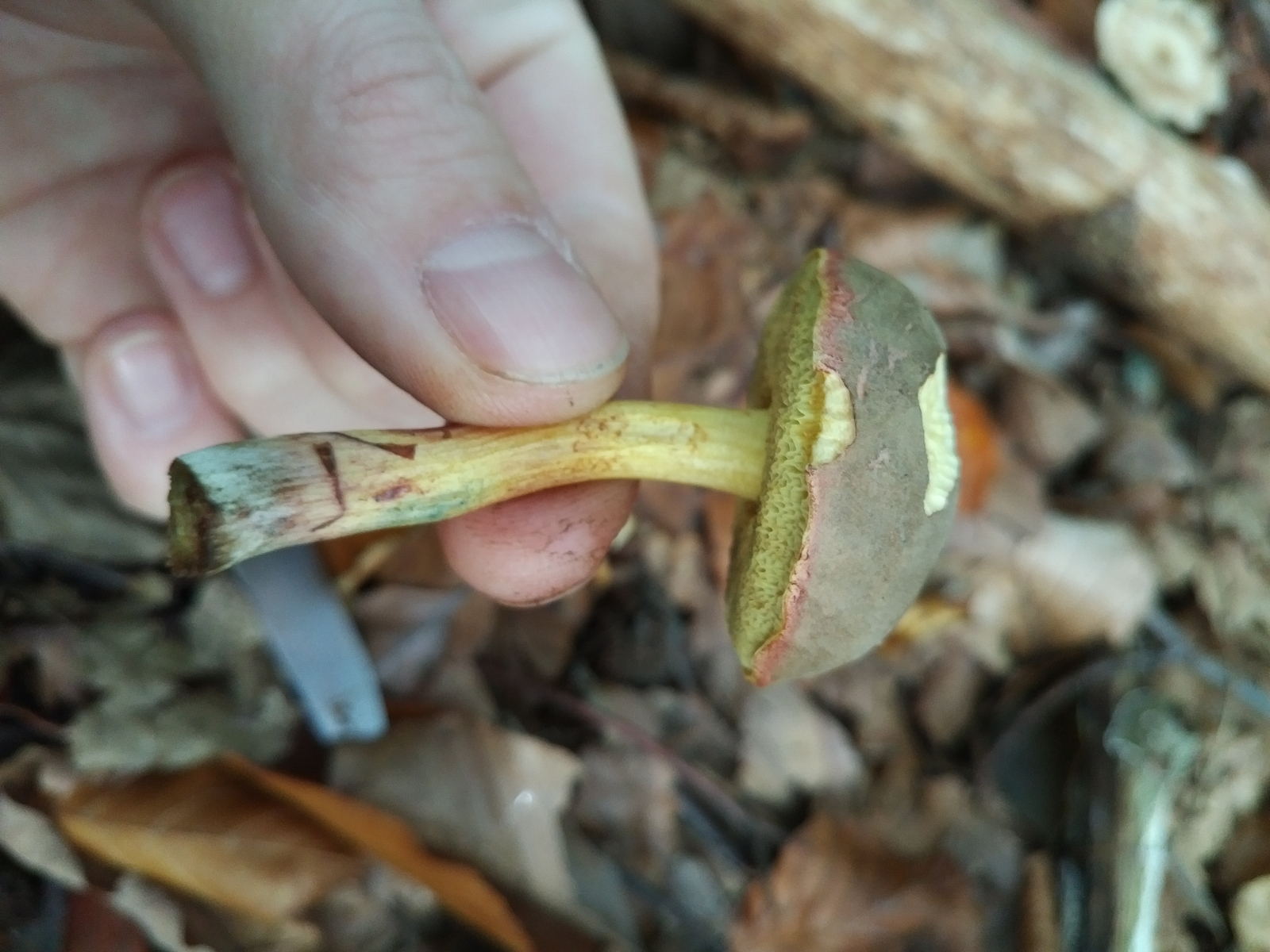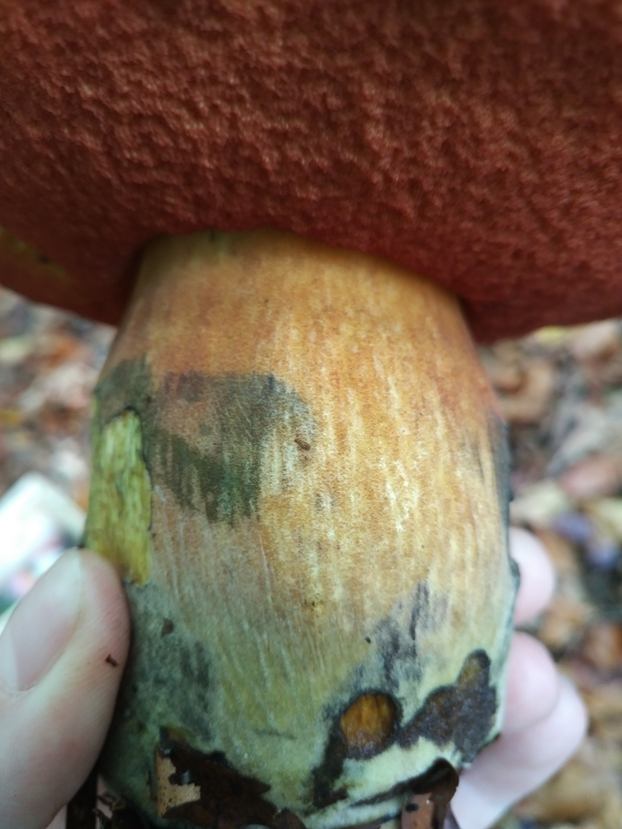Pilz 3: Hier tippe ich auf einen der Rotfußröhrlinge. Hatte zuerst auch die Ziegenlippe in Betracht gezogen, aber die Farbe des Schwamms hat mich wieder zu den Rotfußröhrlingen gebracht.