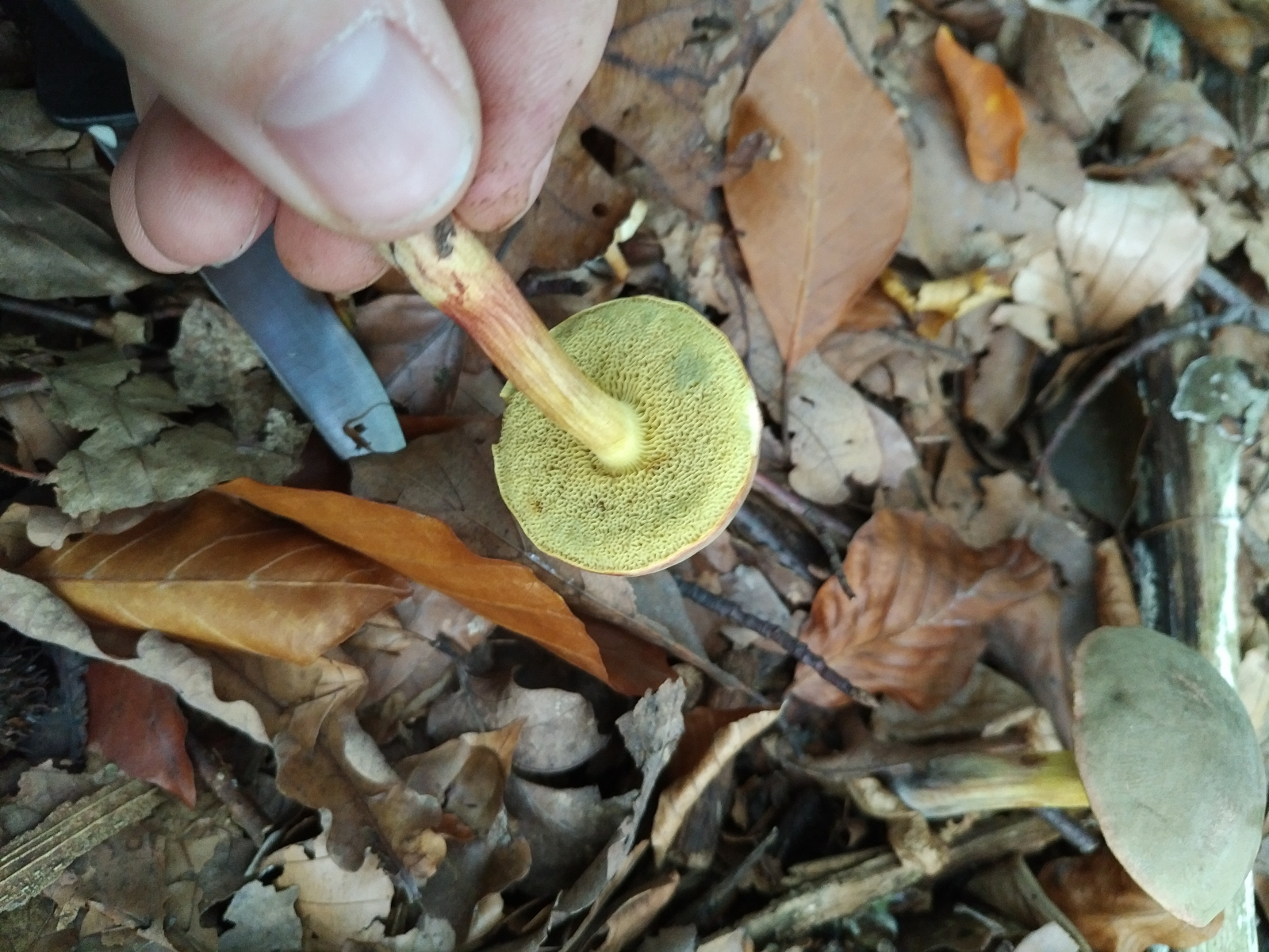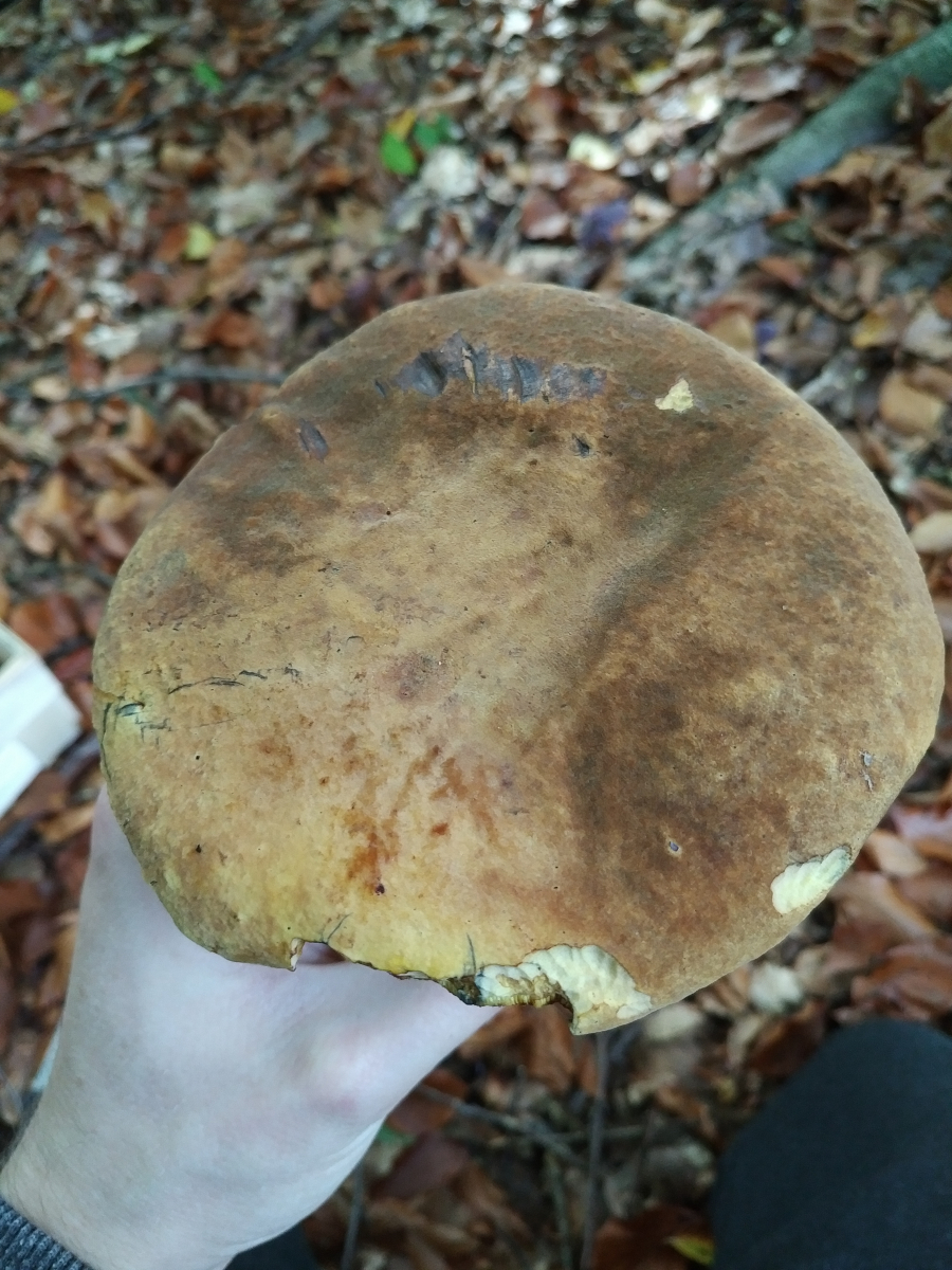 Pilz 3: Hier tippe ich auf einen der Rotfußröhrlinge. Hatte zuerst auch die Ziegenlippe in Betracht gezogen, aber die Farbe des Schwamms hat mich wieder zu den Rotfußröhrlingen gebracht.