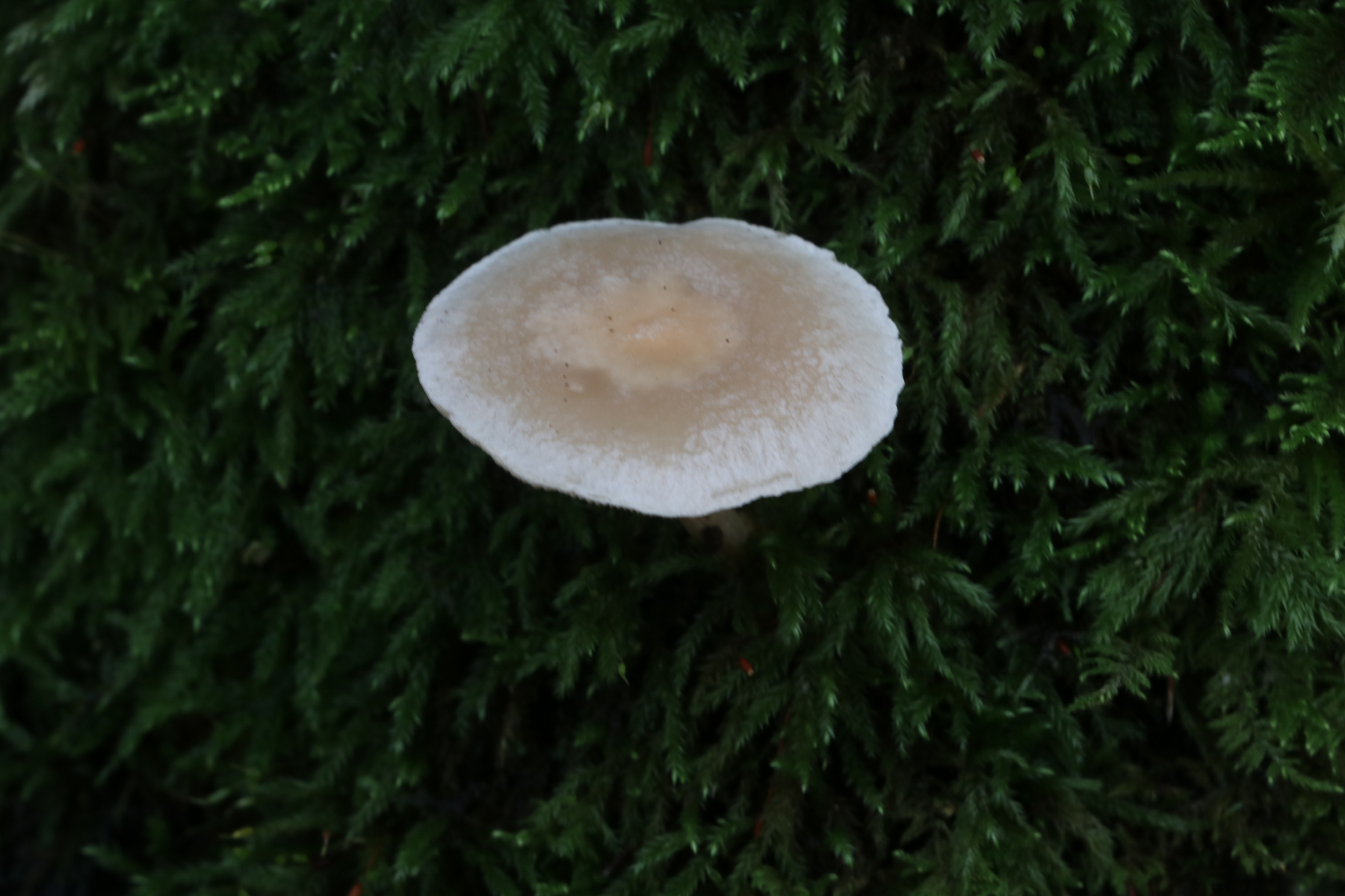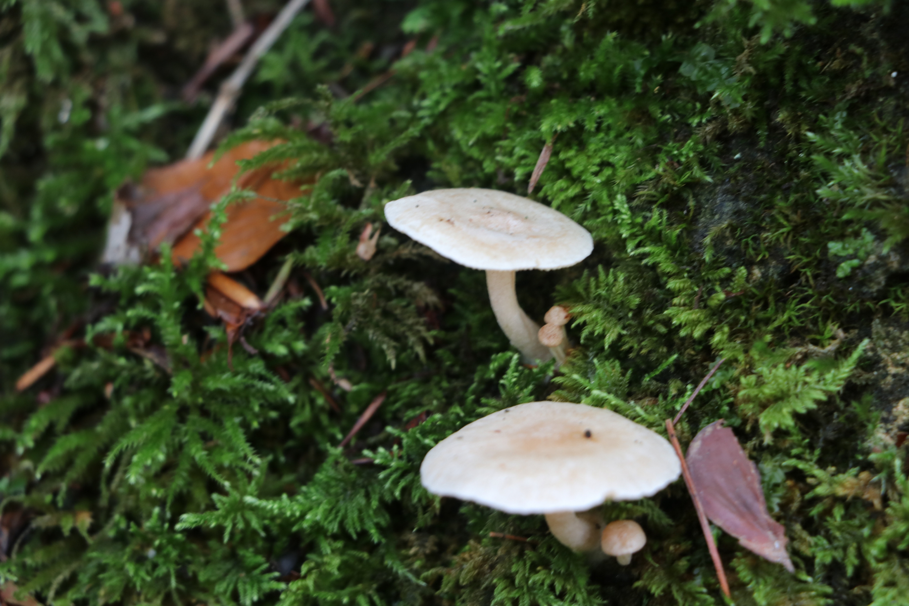 Irgendwie scheint mir der rinnigbereifte Trichterling (Clitocybe rivulosa) eine Option, aber kann der auch auf Moos auf einem Felsen?