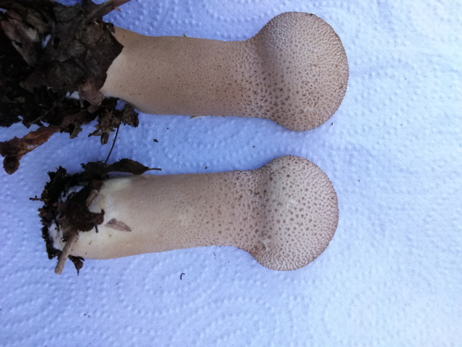 für mich ist das der Flaschenstäubling. Wenn du dir die Warzen/Stacheln mal genau anschaust, da befindet sich immer ein größerer Stachel und außenrum drei bis fünf kleine Warzen. Dies siehst du gut am gesamten Kopfteil. Soweit mir bekannt ist, ist dies bei keinem anderen Stäubling der Fall .