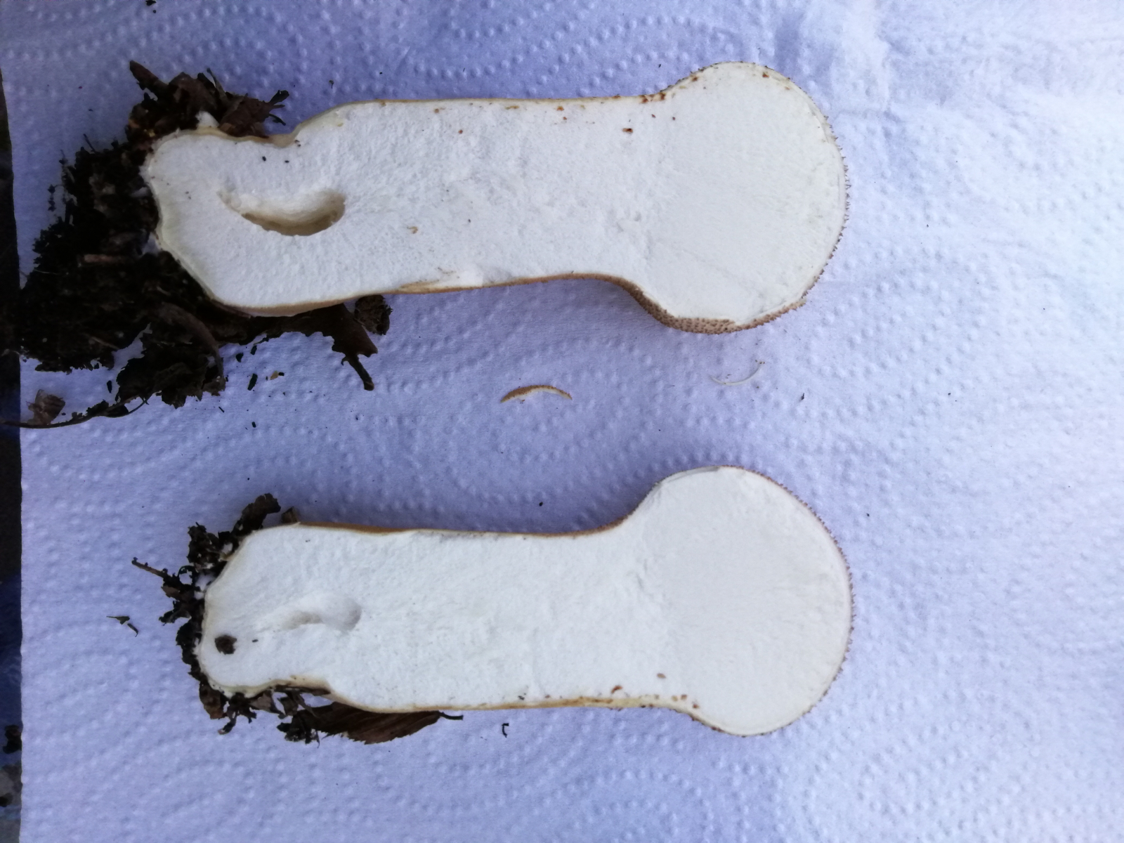 Wenn Du mehrere Beutelstäublinge (Calvatia excipuliformis) auf einem Haufen findest, sieht jeder anders aus. Die variieren gerne, sind Individualisten. Mal ist das Kopfteil rumpflig, mal glatt, mal eine Falte hier, mal eine Falte da. Zumeist ist auch das Verhältnis von Stiel zum Oberteil deutlich anders als bei den Flaschenstäublingen, der Stiel ist oft verhältnismäßig kurz im vergleich zum manchmal überdimensioniert wirkenden Oberteil. Und die können richtig groß werden!