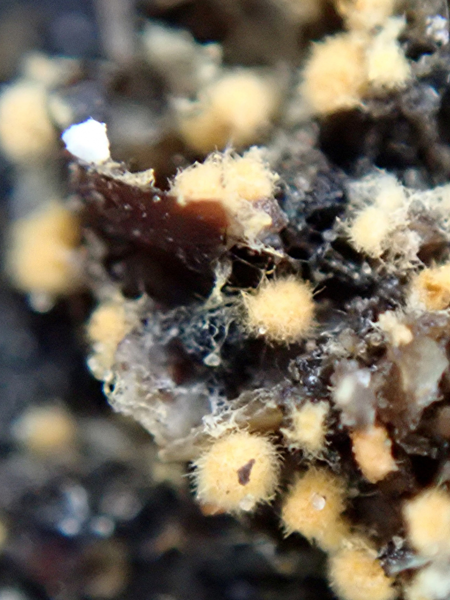 Sieht nach Schleimpilz aus. Irgendwie kann man auf allen Bildern nicht so richtig was erkennen, zeigen alle das gleiche.... aber Speicherplatz kostet ja nichts mehr heutzutage.