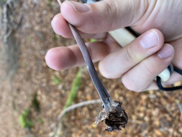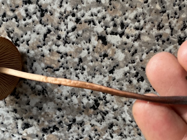 Das ist der Saitenstielige , der hat ganz jung braune Stiele , welche dann von unten her schwärzen.