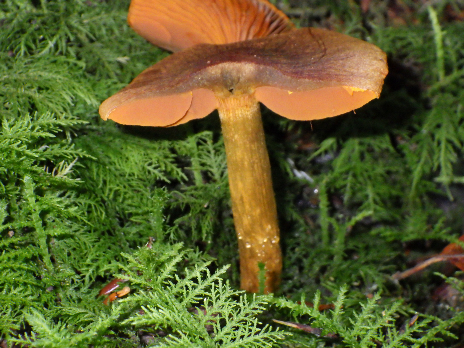 2) Braunroter Pilz Hut 3-6cm mit auffälligen fast orangen Lamellen