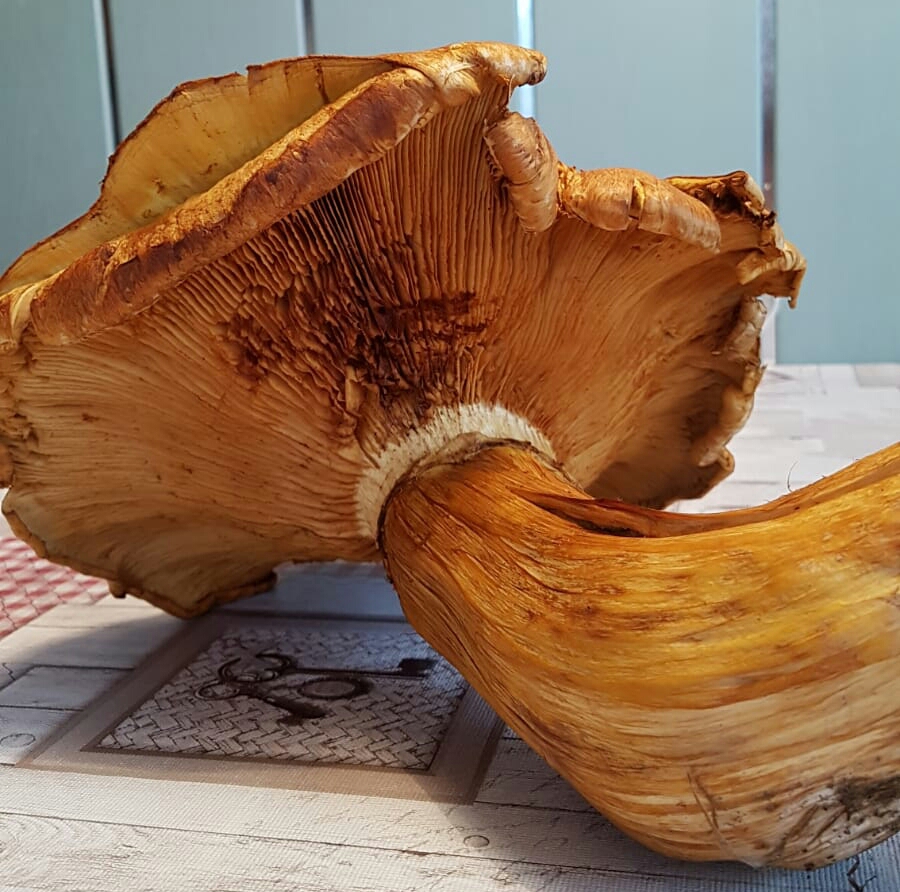 Wer kennt solche Pilze, der größte wog 1300 g und hatte einen Hutdurchmesser von 30 cm, der Geruch ist intensiv pilzig, erdig.