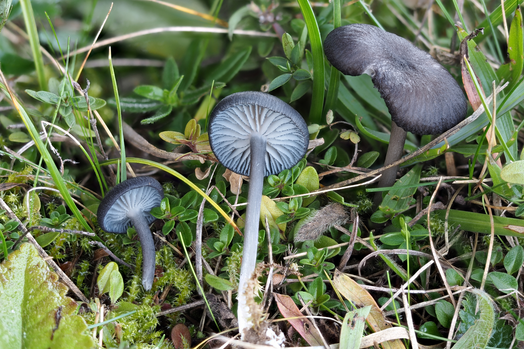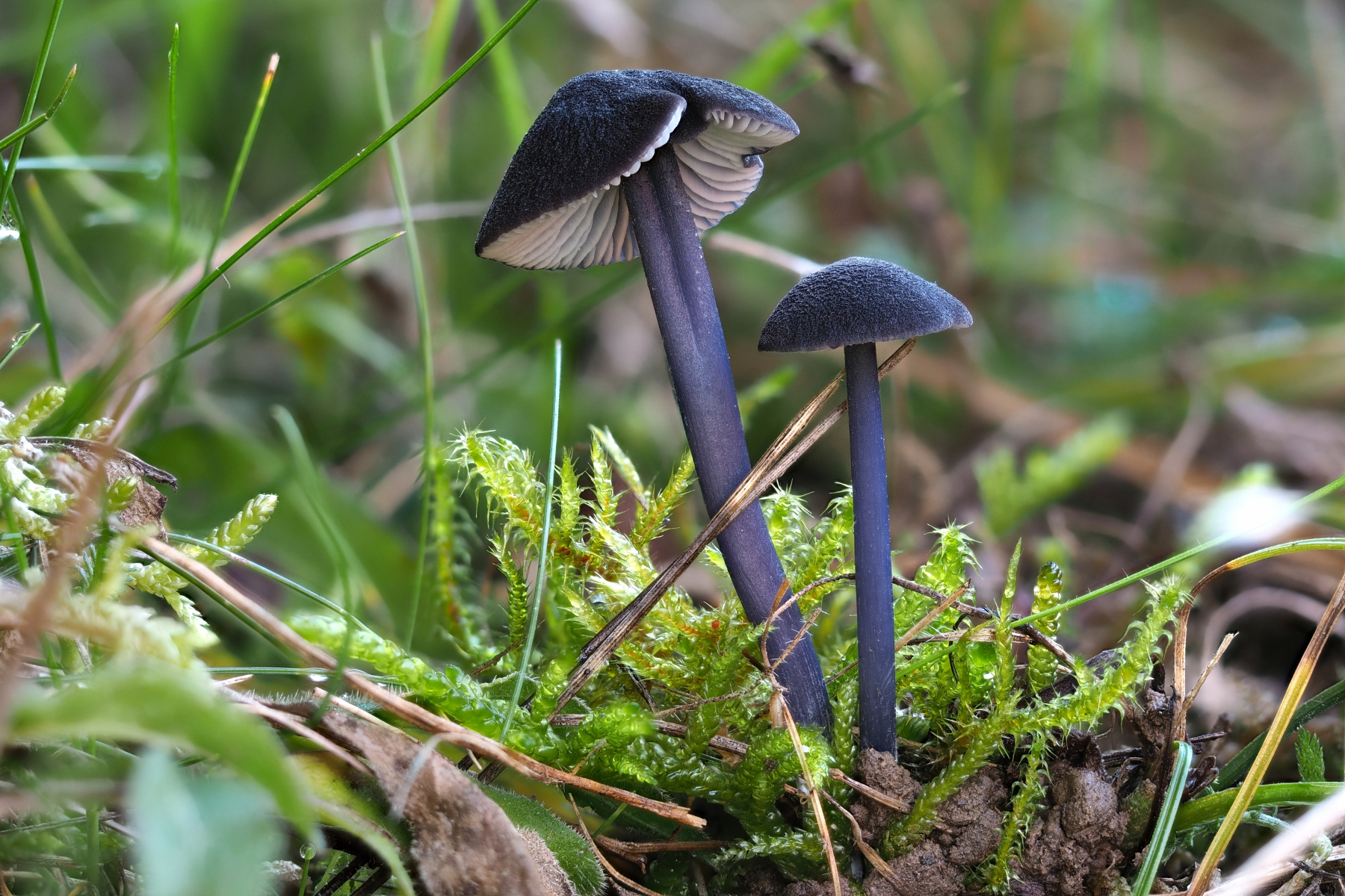 Ein Schwärzender Saftling, Heidi (Hygrocybe conica agg.).