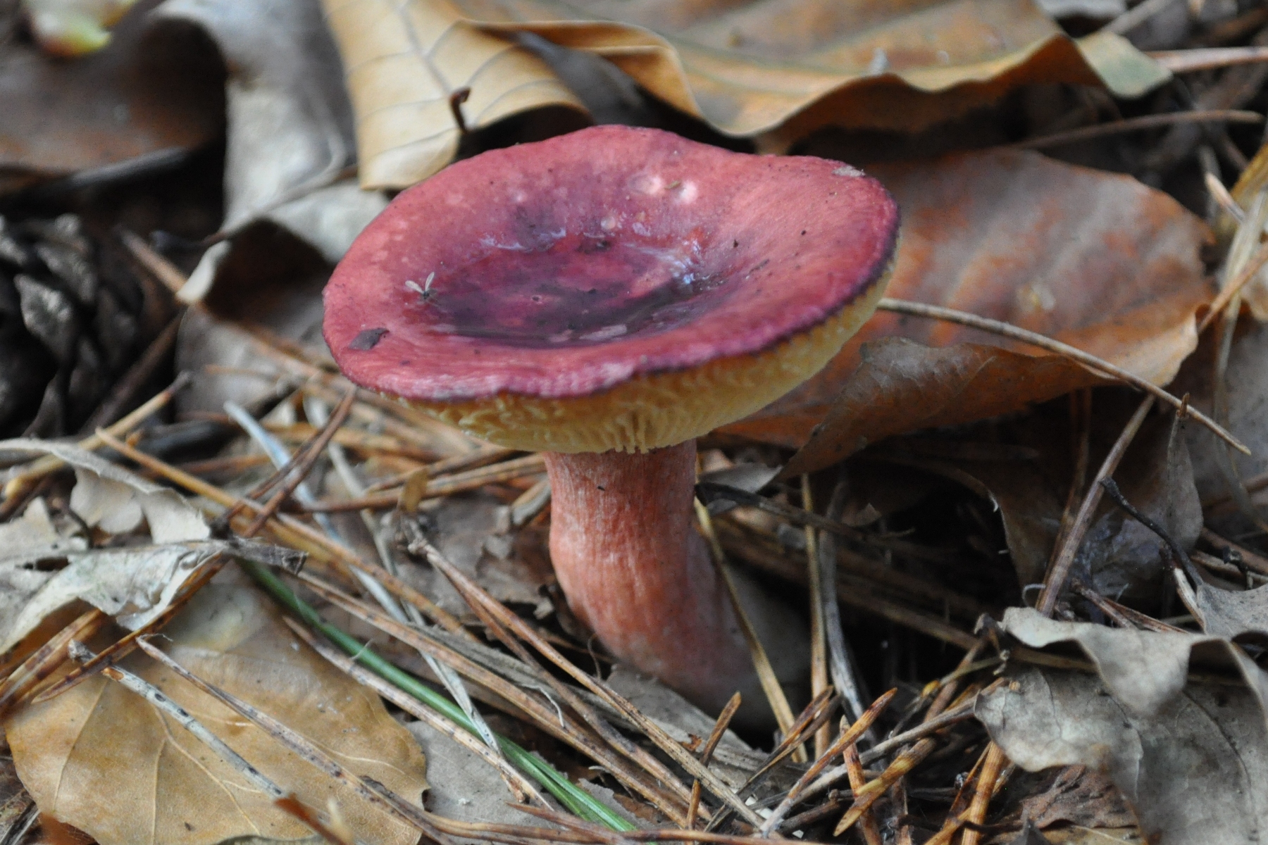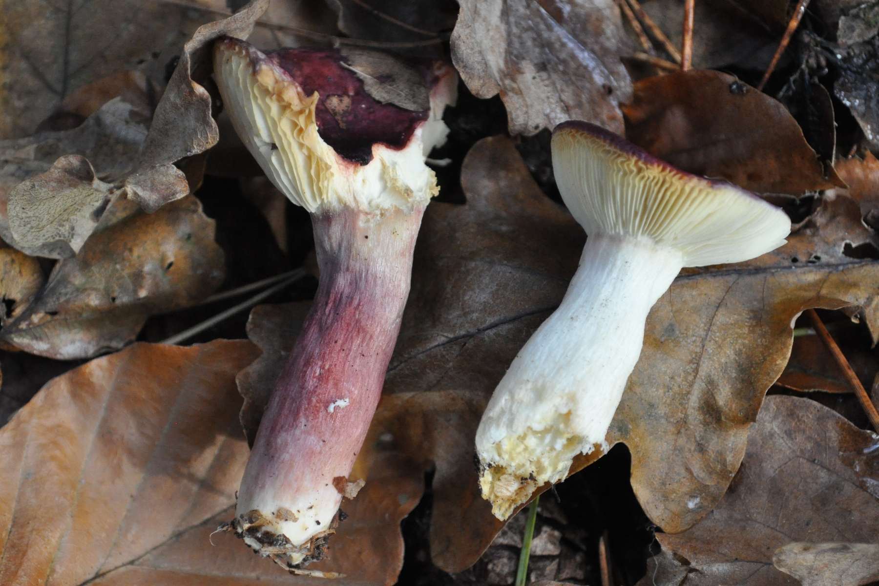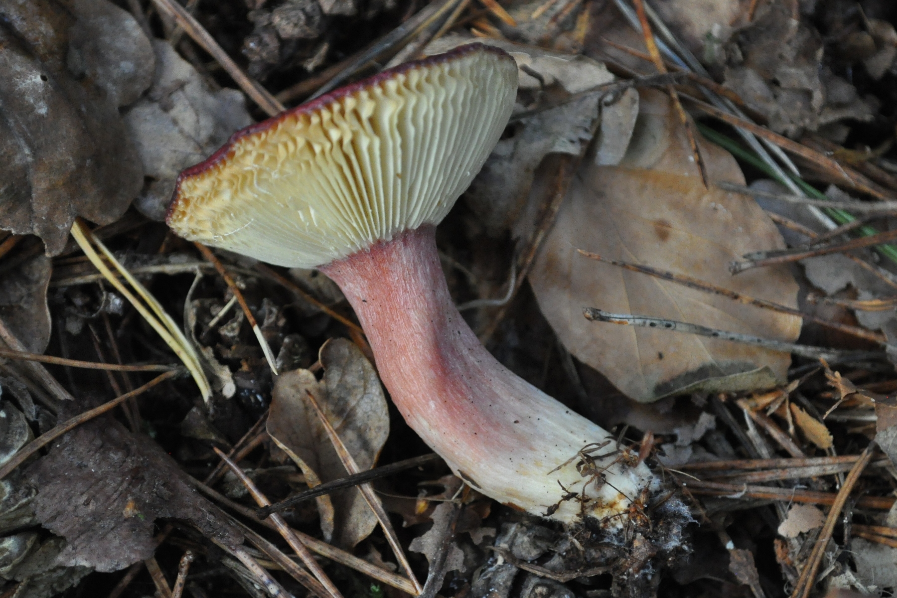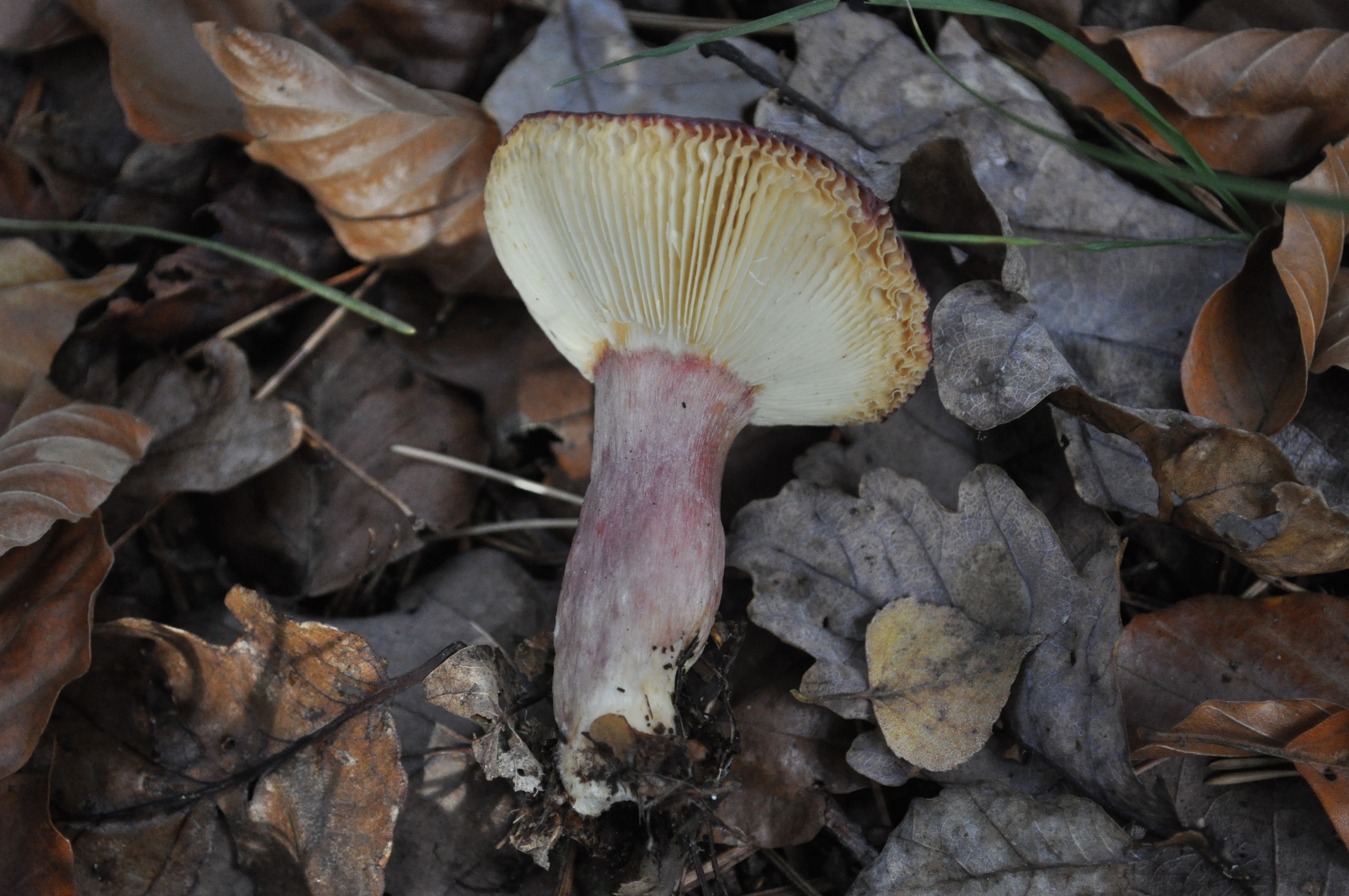 Das müßte etwas anderes sein, ich hatte erst an Russula queletii den Stachelbeer-Täubling gedacht, aber der wächst eher bei Fichte.