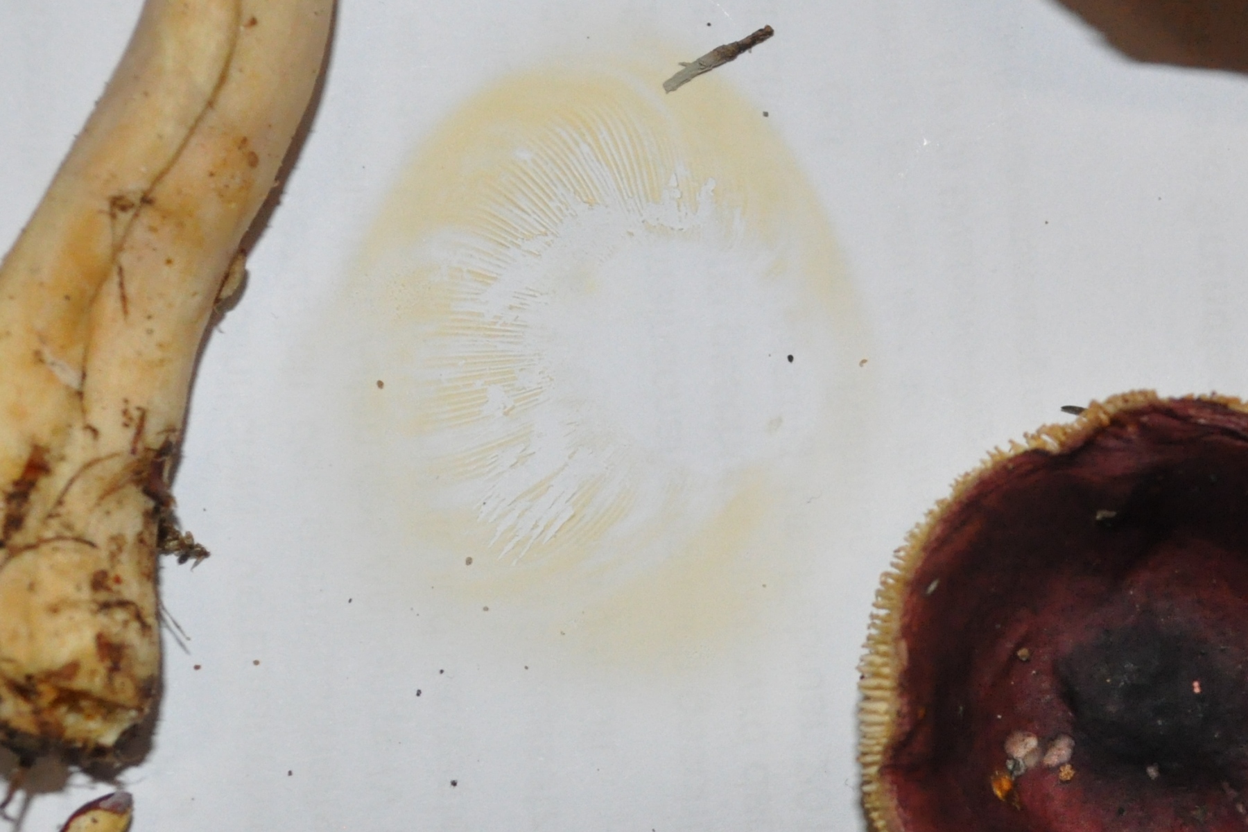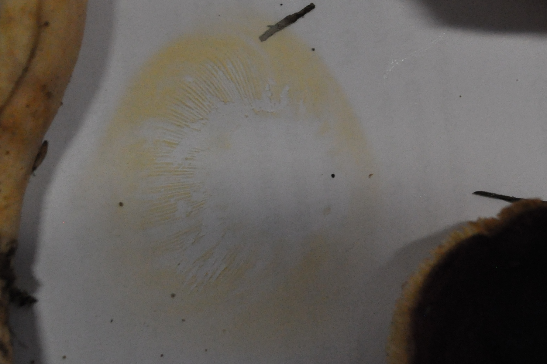 besten Dank! Ich ergänze noch zwei Fotos des Sporenpulvers (einmal mit Blitzlicht, einmal ohne). R. queletii kann man vom Standort her, glaube ich, ausschließen. Ich weiß nicht, welche weiteren Arten noch in Frage kommen, aber da R. sardonia nach der Literatur im Tiefland in Kiefernwäldern auf Sandböden zu den typischen Pilzen gehört ("oft Massenpilz"), typischerweise oft spät erscheint (bis November) und auch im nds. Tiefland, v.a. im Osten, weit verbreitet ist, stehen die Chancen wohl recht gut, dass es tatsächlich diese Art ist.