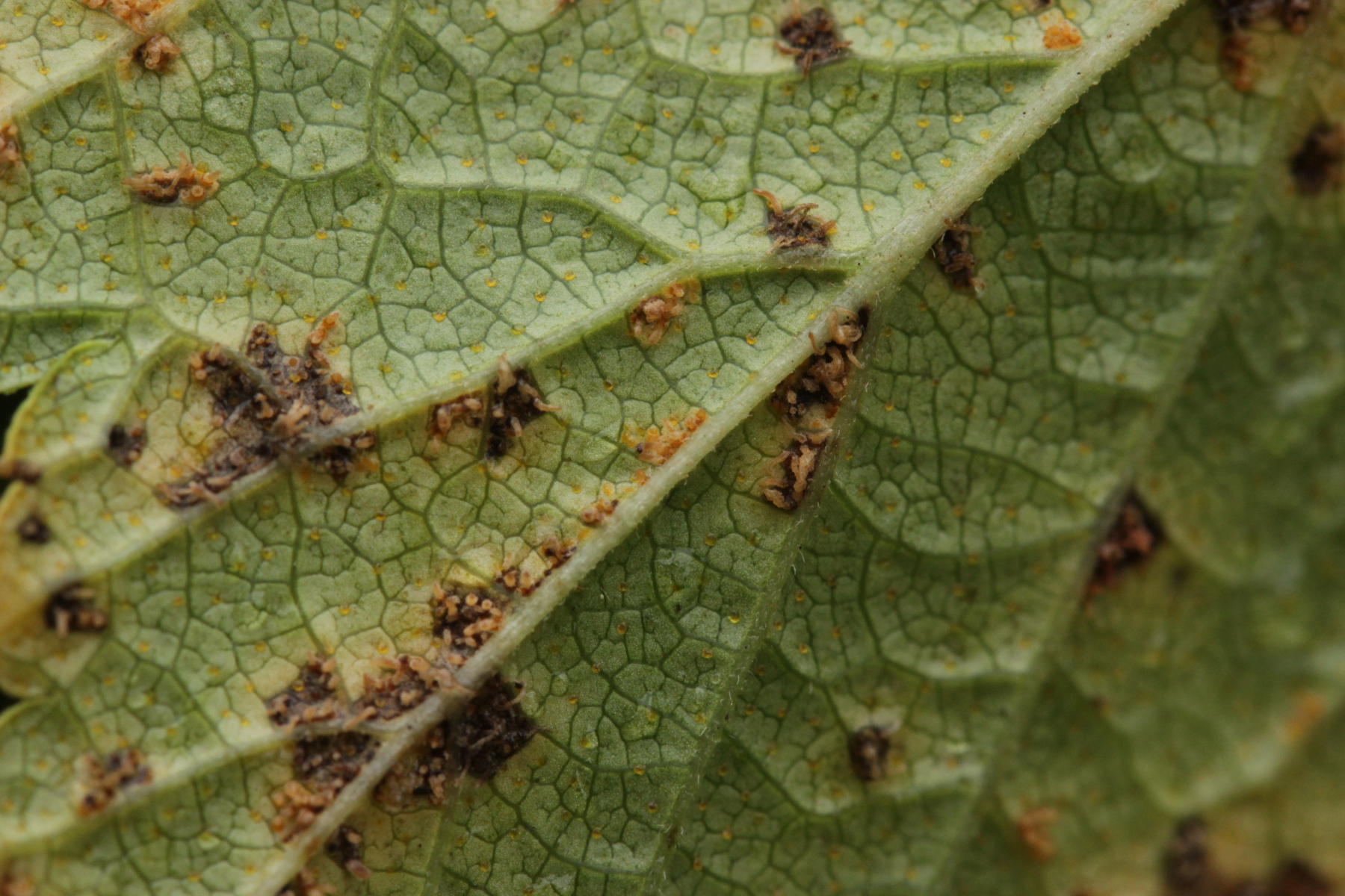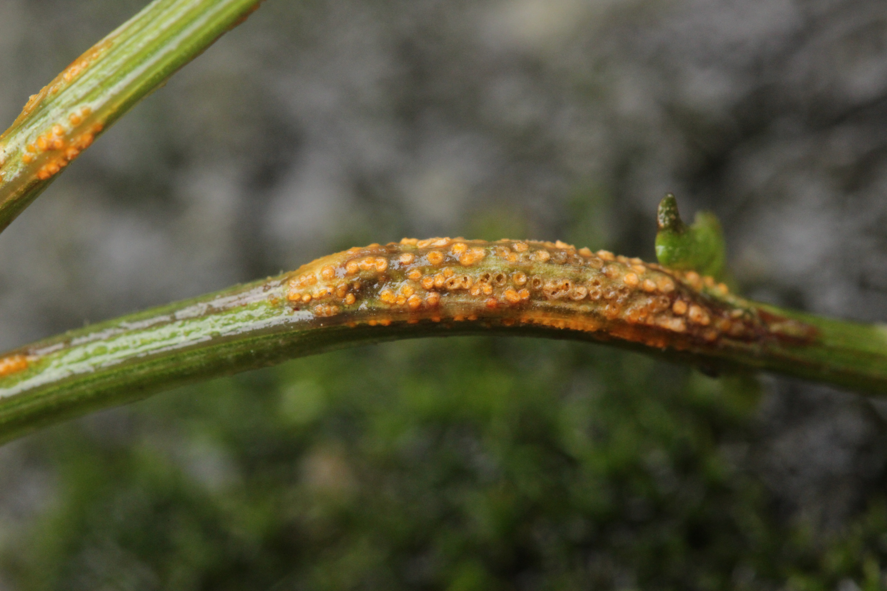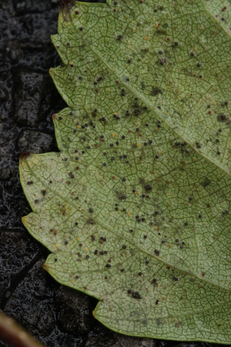 13. Melampsora hiratsukanum ex Alnus glutinosa, der Übeltäter, der seine Sporen in die vorherigen Bilder verstreut hat.