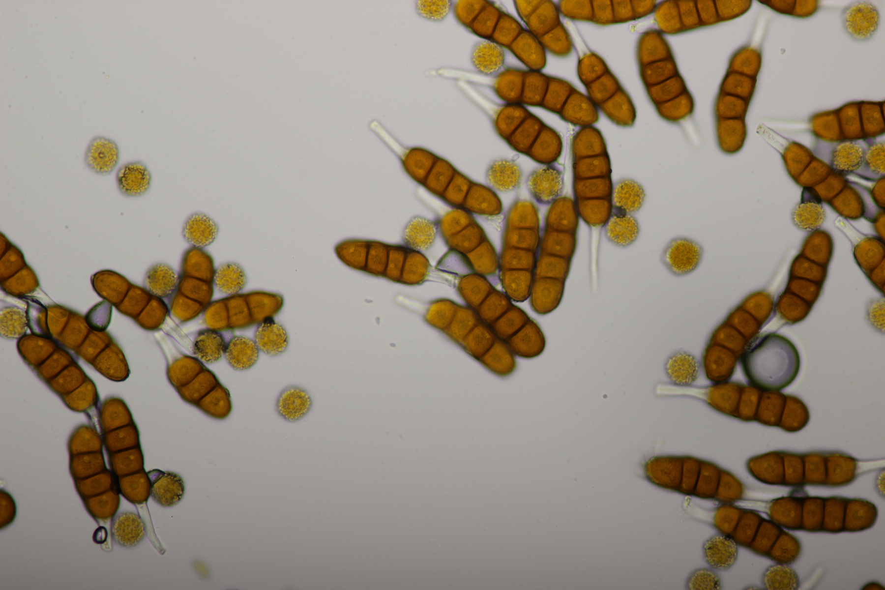 9. Thanatephorus cucumeris ex Achillea millefolium. Dieser Basidiomycet ist polyphag, kann also an verschiedensten Pflanzen gefunden werden.