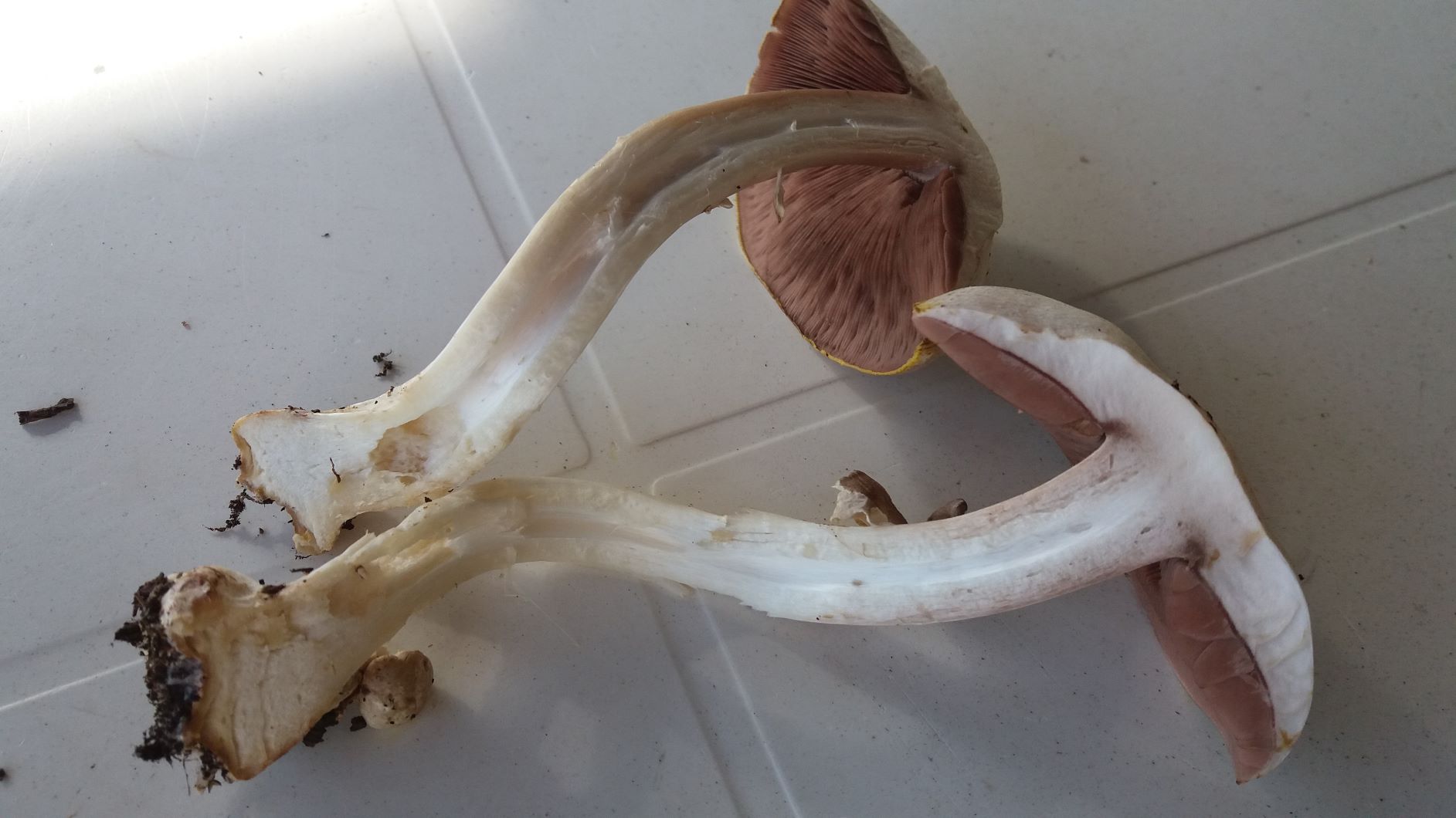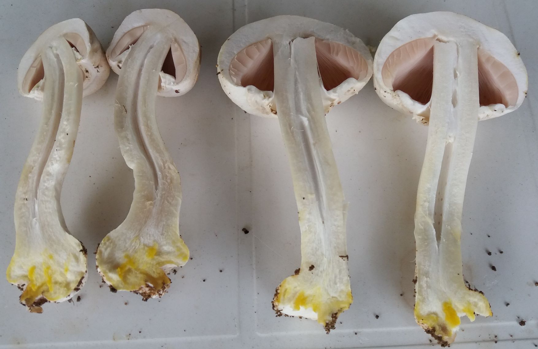 sonst aussen nichts gelbes an der Stielbasis/Stiel. Der Stiel lief im Anschnitt weiter oben so leicht braun-rosa