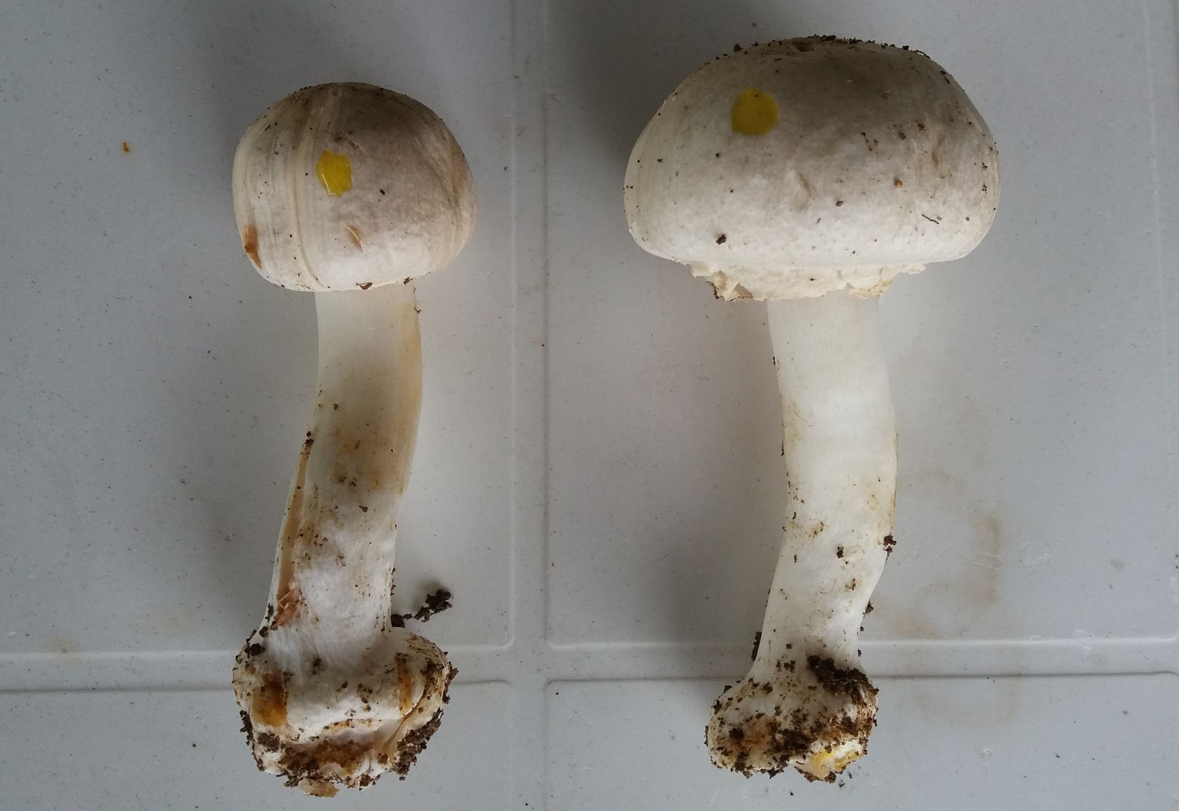 an wie die Lamellen. Auf dem Hut habe ich extra etwas rumgedrückt und die Stelle wurde dann leicht gelb.