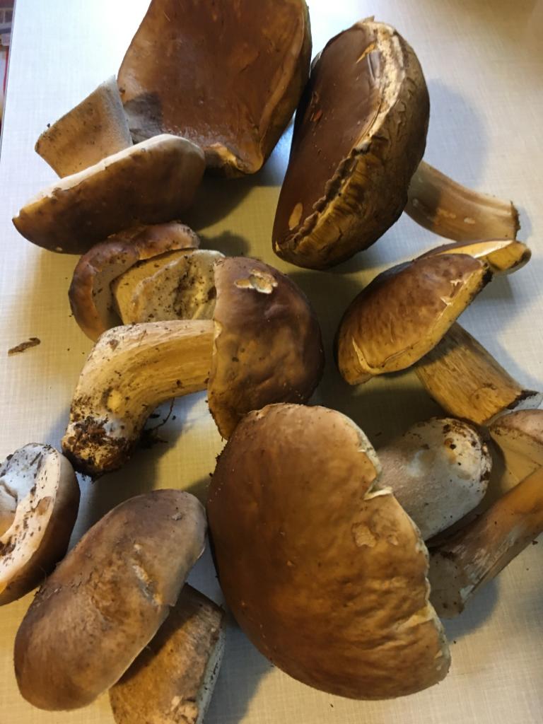 Ich glaube ja, es sind ein paar Steinpilze und ein paar Maronen. Könnt ihr mir helfen?