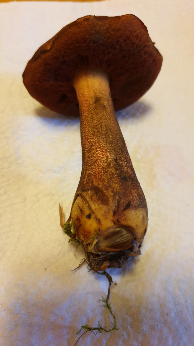 Könnte das ein netzstieliger Hexenröhrling sein? In dem Gebiet wachsen auch jede Menge Flockis.