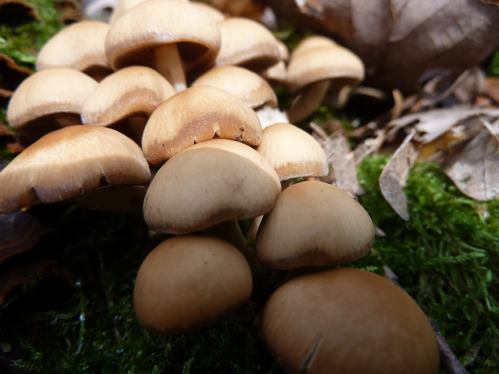 Da dachte ich wegen dem hygrophanen Hut zuerst an Stockschwämmchen, sind aber keine: