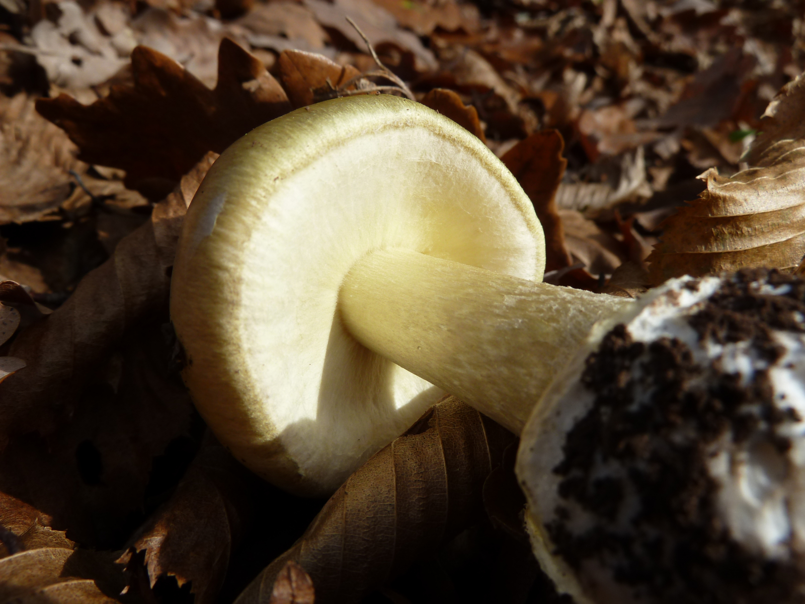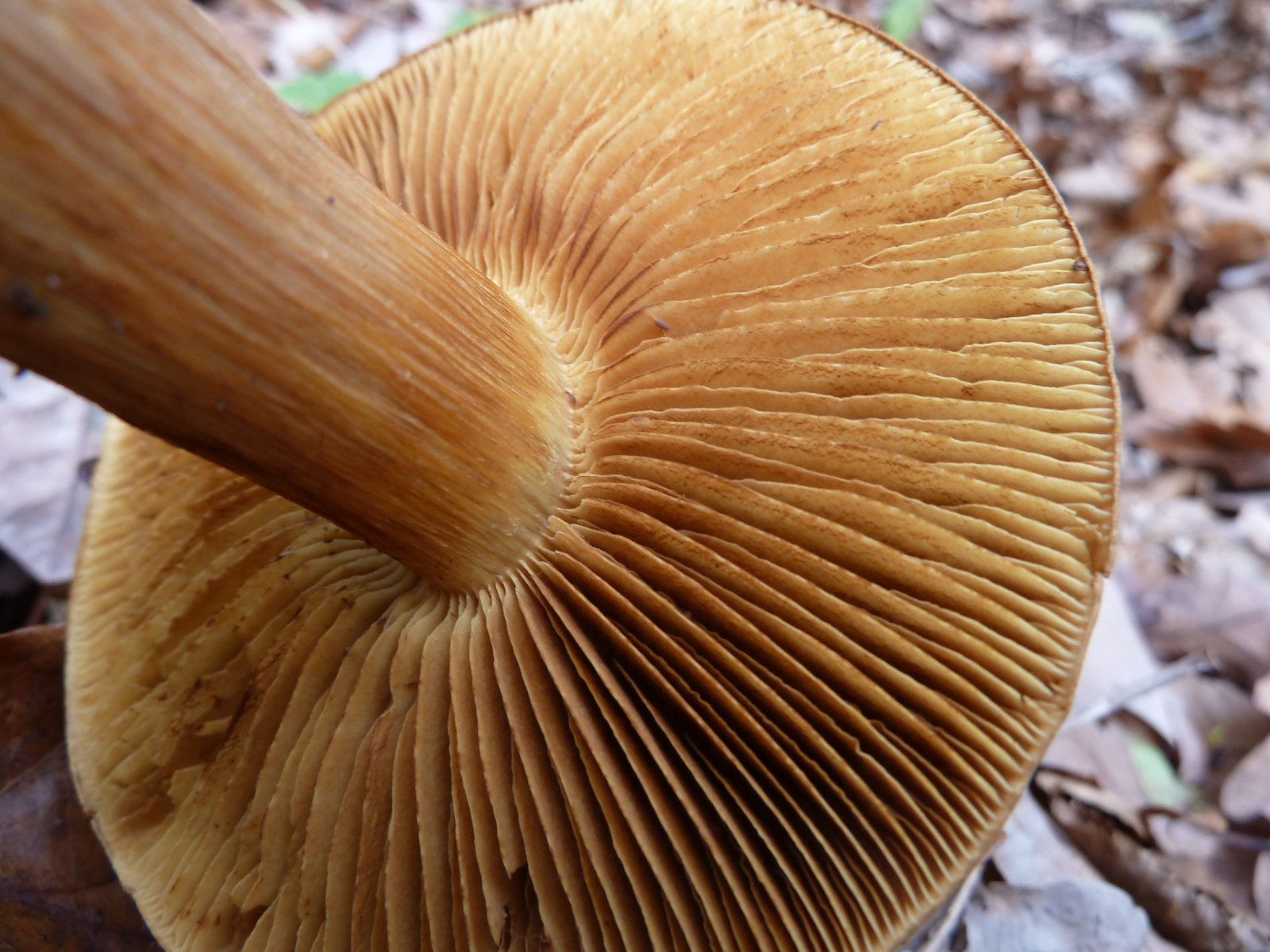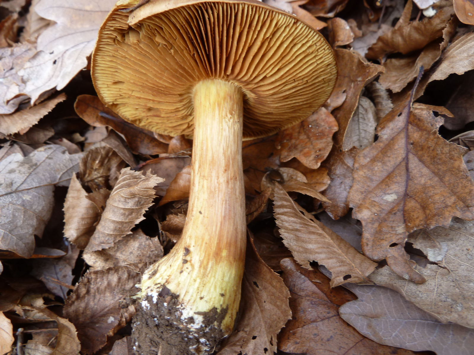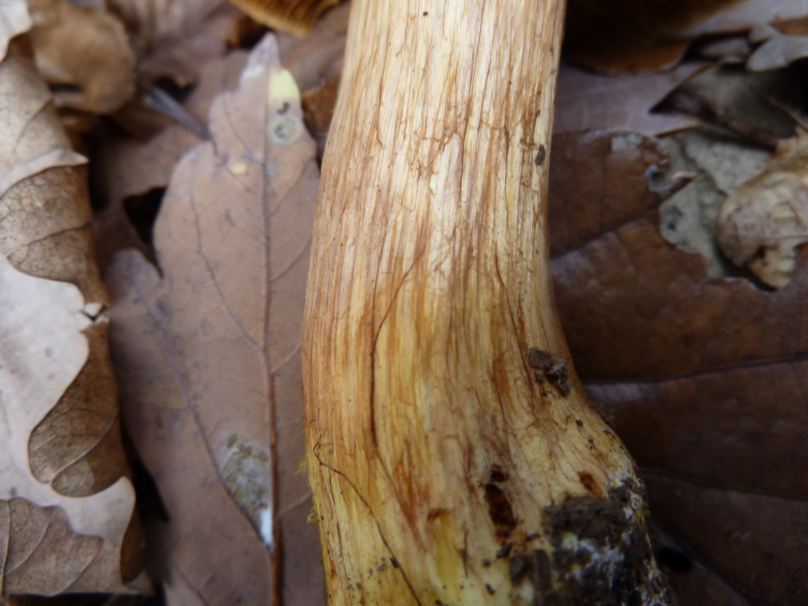Schöne gelbliche und rötliche Farbtöne am Stiel dieser Cortinarie: