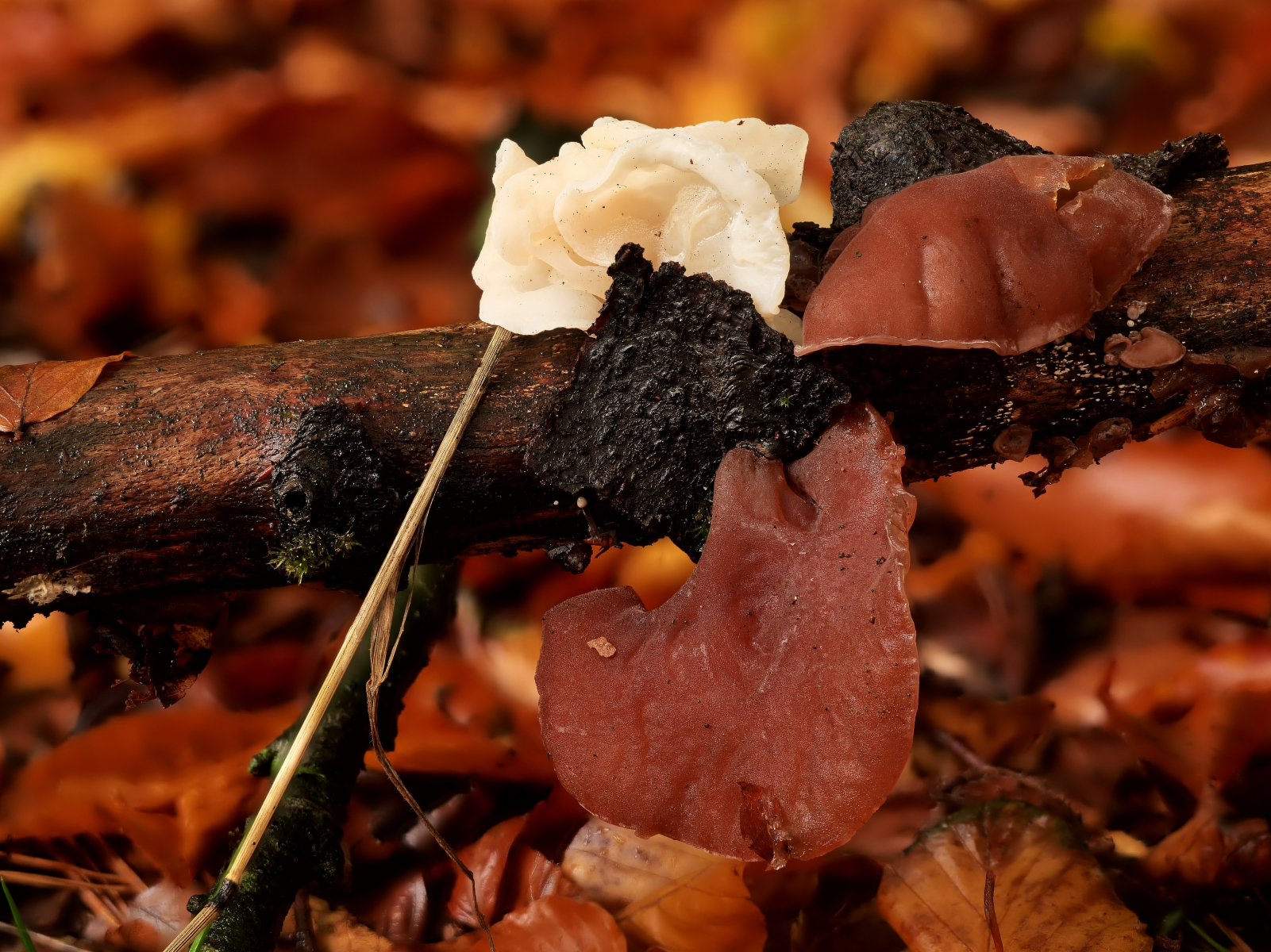 Das Judasohr Panellus serotinus war auch, erstemal in dem Gebiet, in beiden Farbvarianten zu sehen