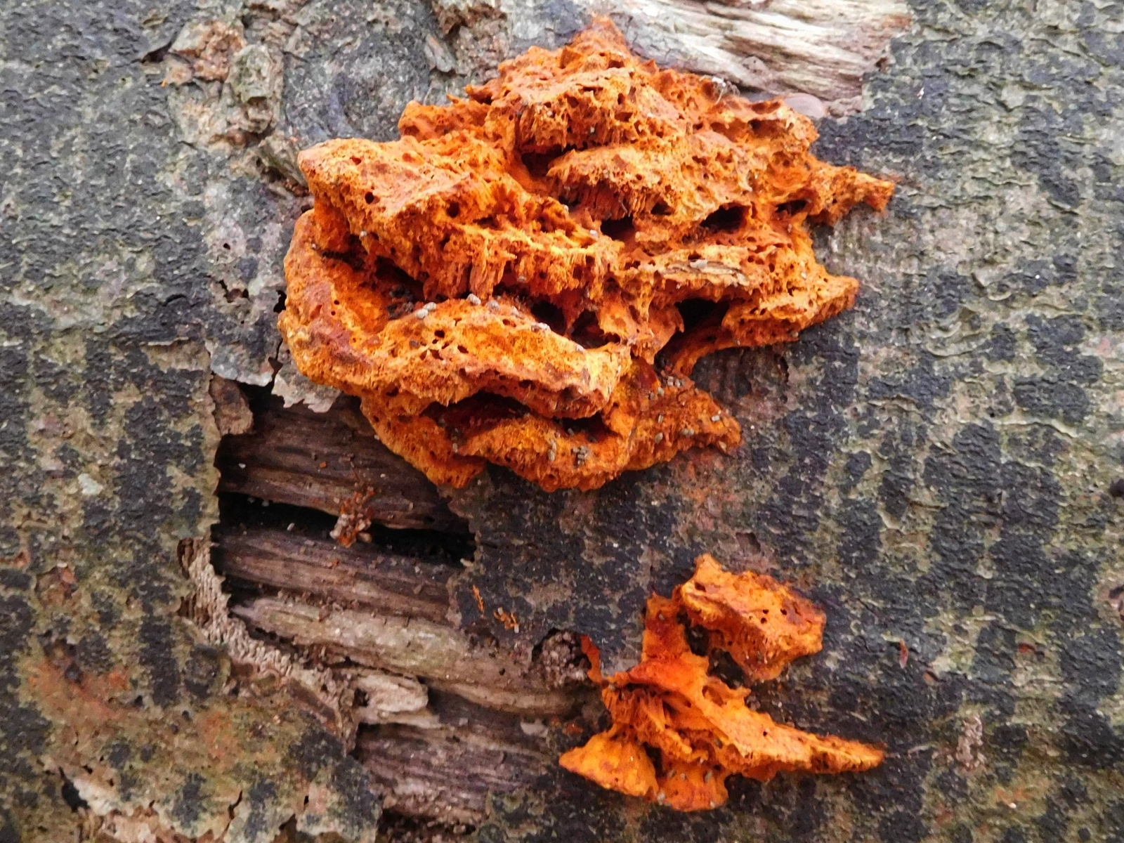 Ja, ich habe heute die Totenruhe gestört. An liegender Buche eine fast leuchtende Mumie. Ich kenne selber keine Tramete , Weichporling, .............. mit so einer intensiven Farbe im Alter. Ist doch fast Zinnoberrot, oder?