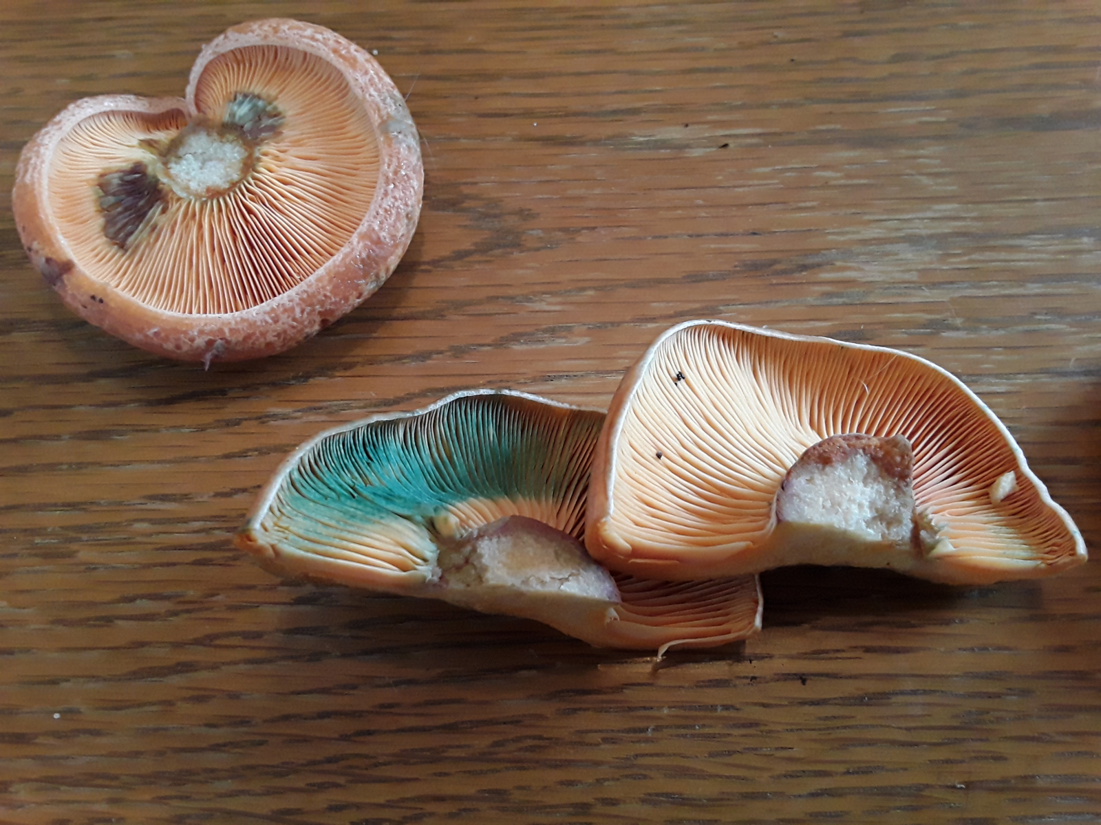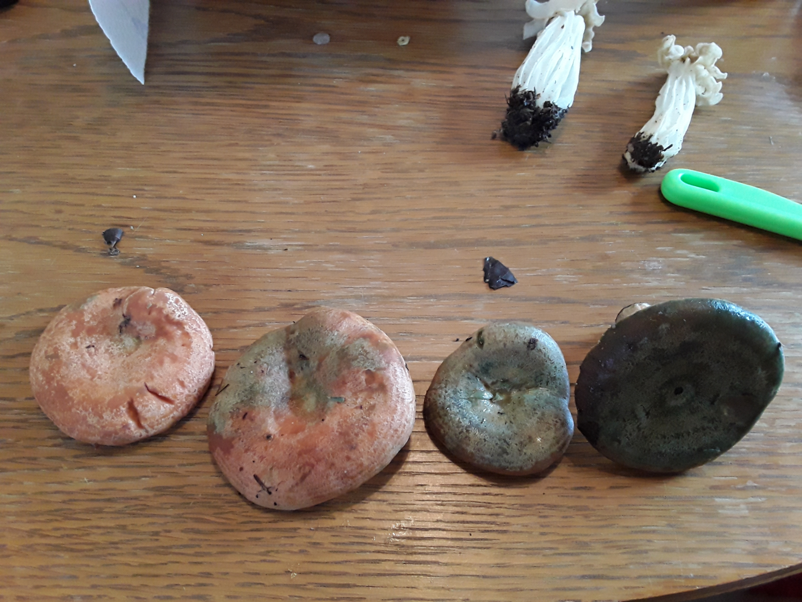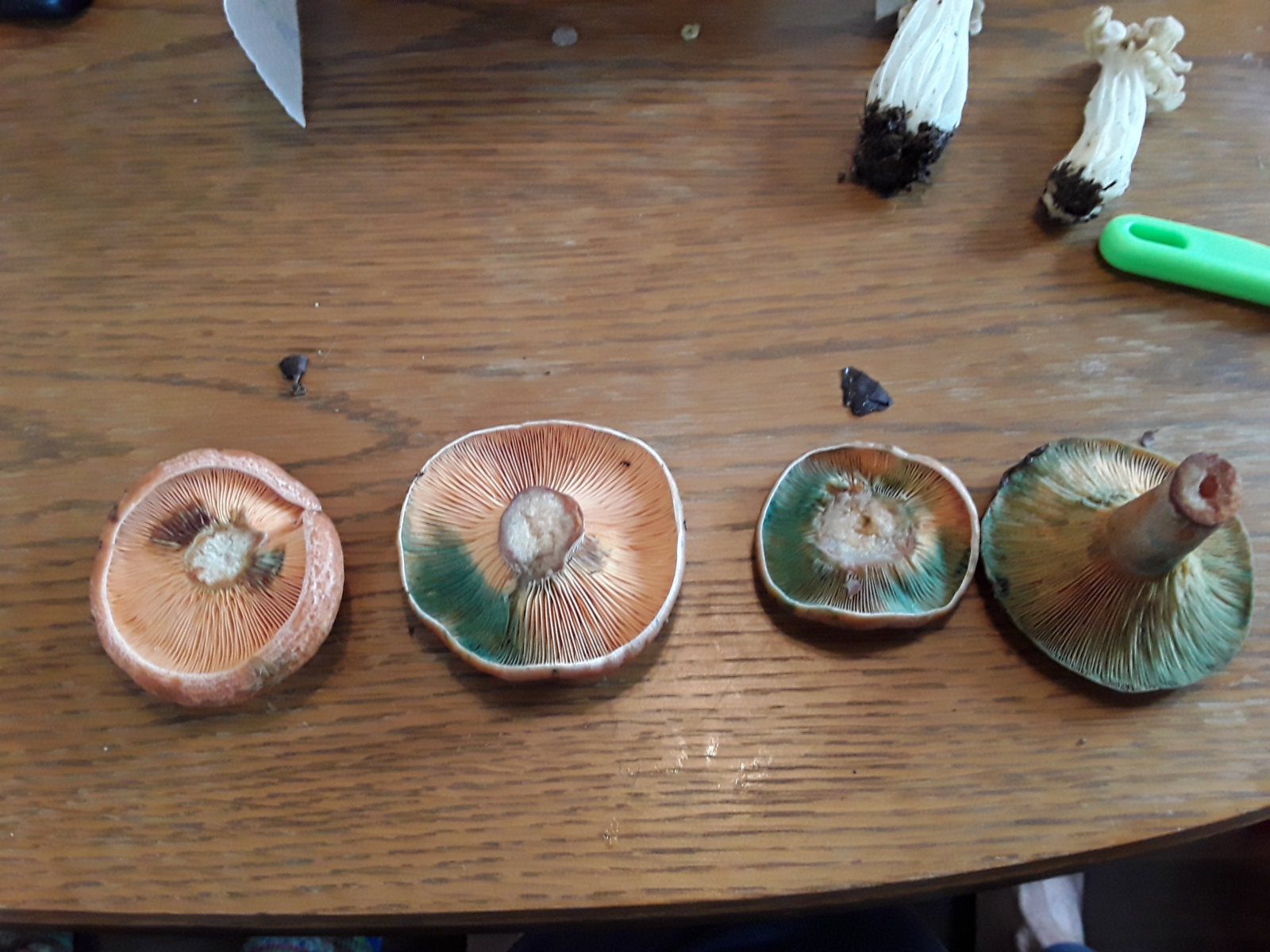 Bei den Edelreizkern bin ich mir nicht sicher, ob sich nicht Grünspan Reizker daruntergemischt haben? Oder sind die witterungsbedingt grünfärbend ? (Hab nur einzelne Exemplare fotografiert)