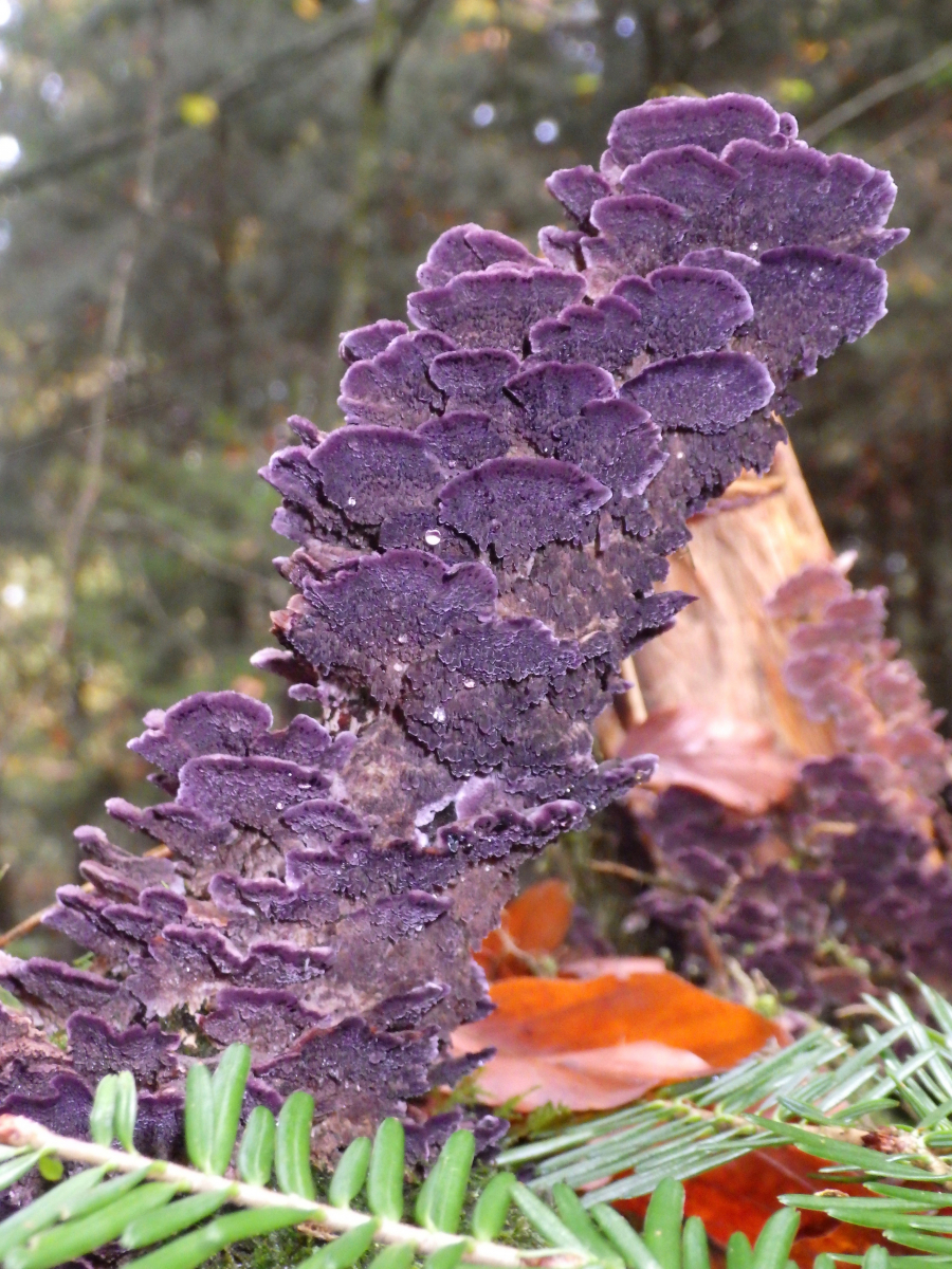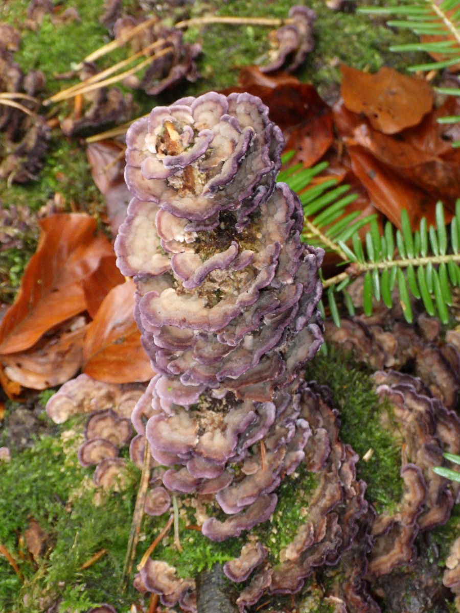 3) Violettrandige Tramete? Trichaptum biforme oder Gemeiner Violettporling Trichaptum abietinum ?