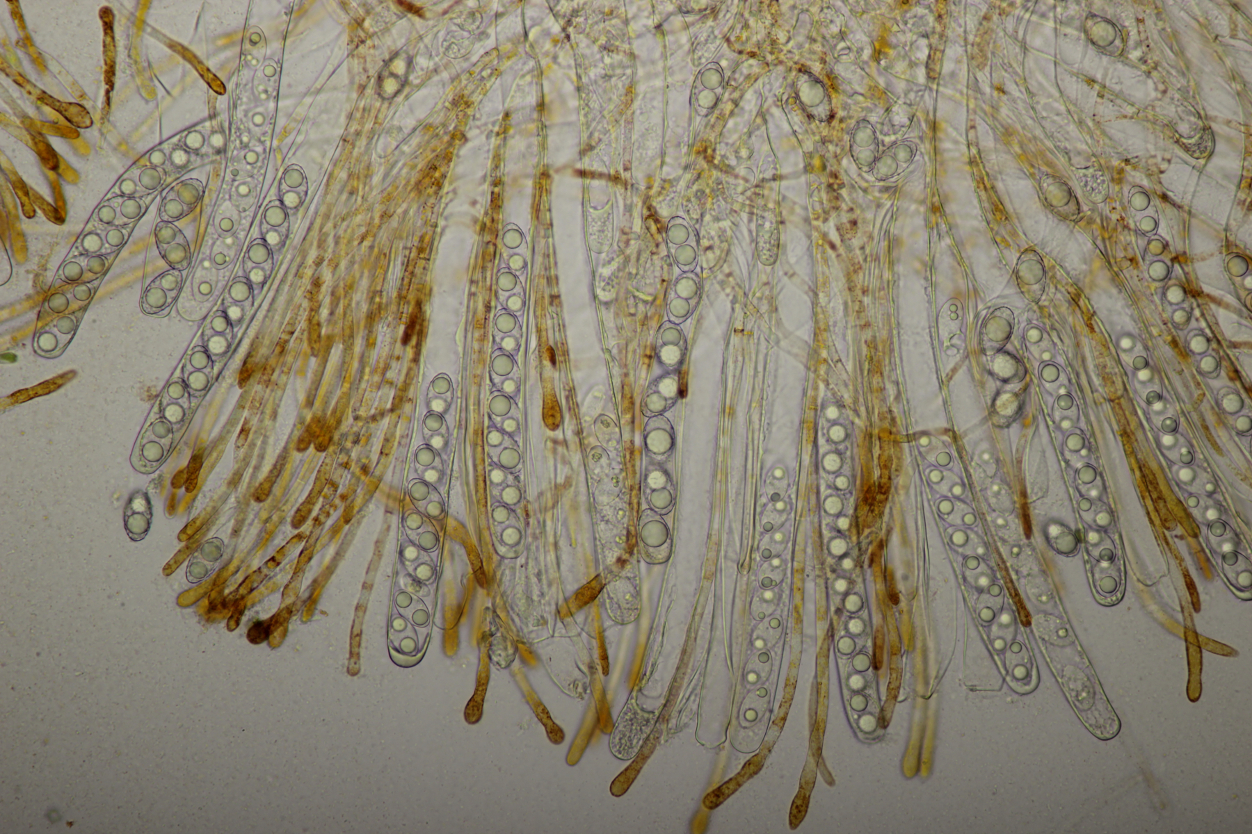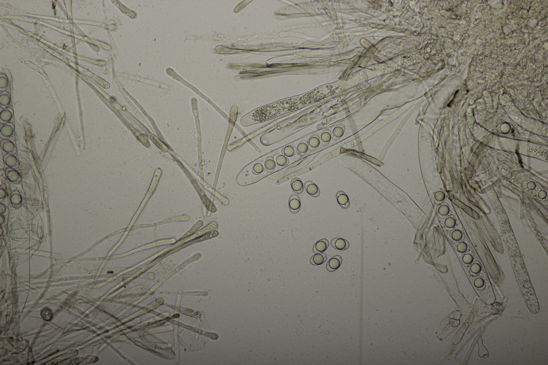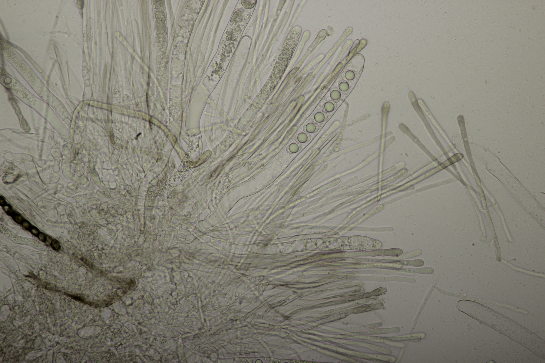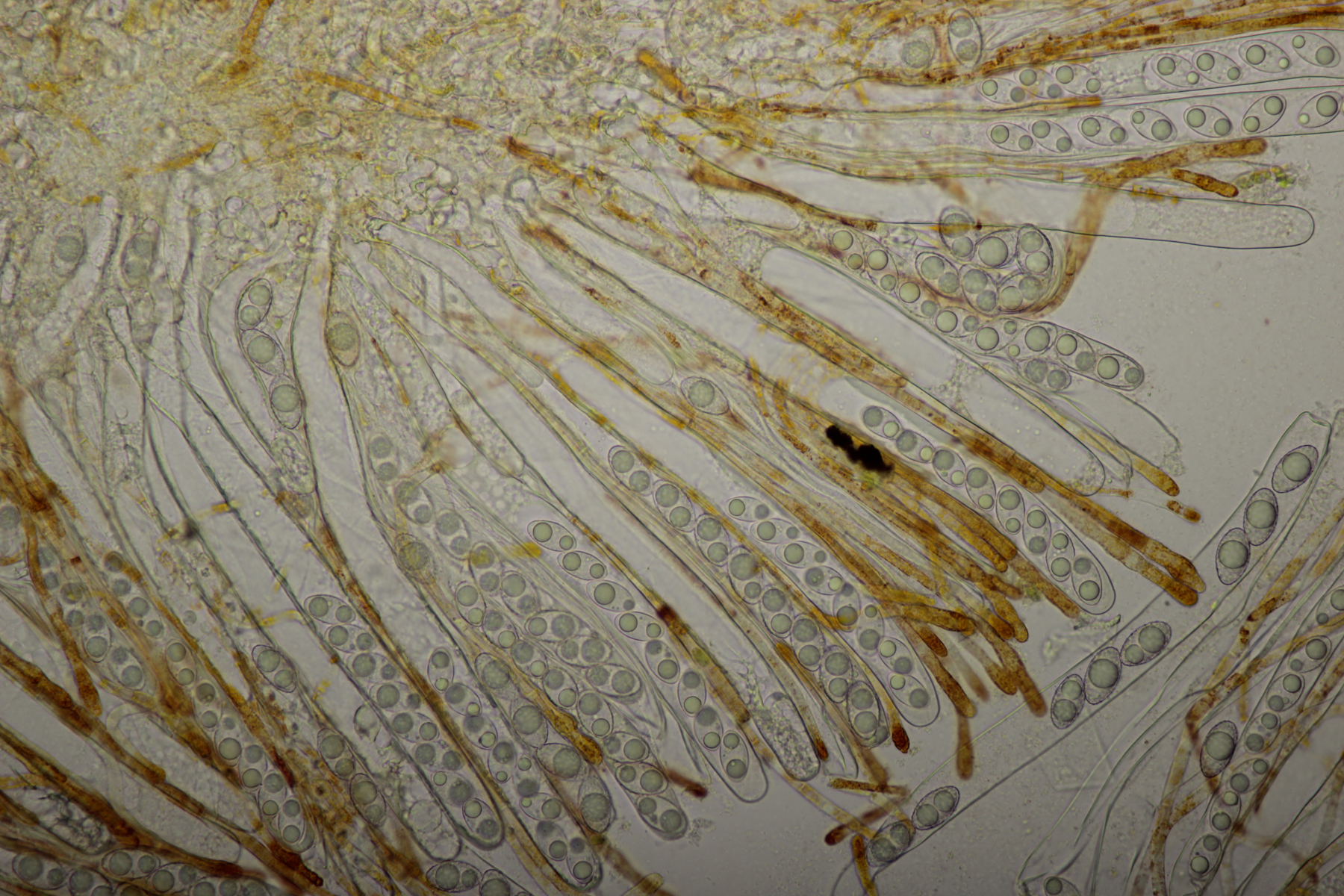 5. Eine gelbmilchende Peziza. Sporen muß ich noch ausmessen.