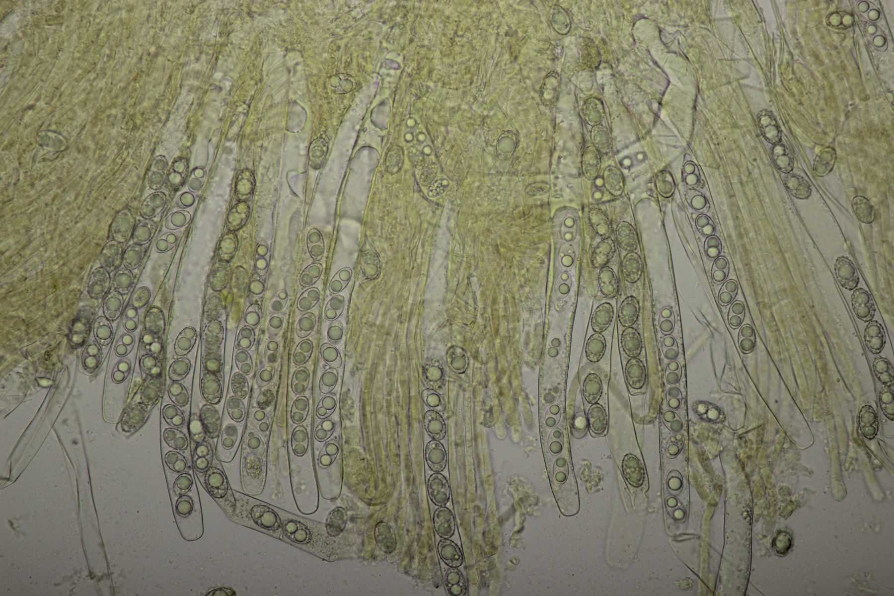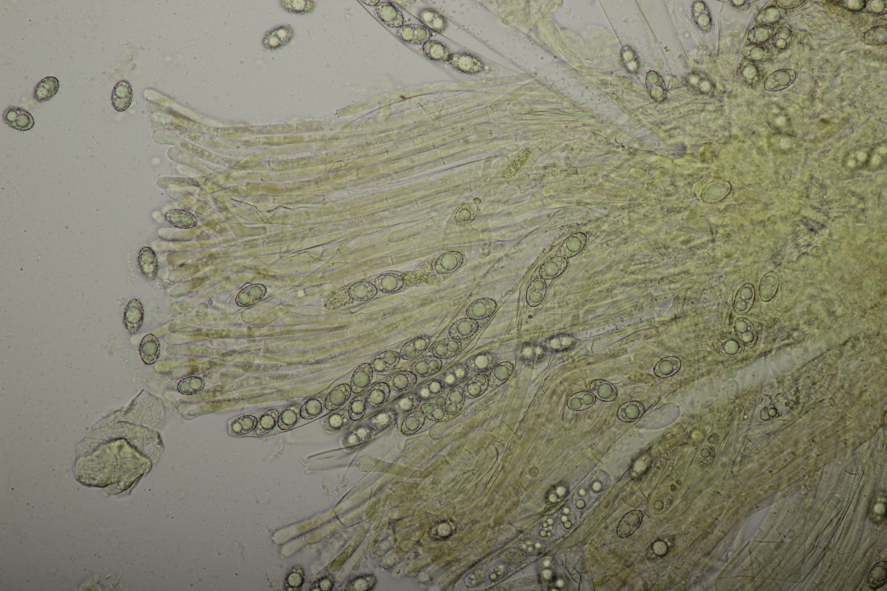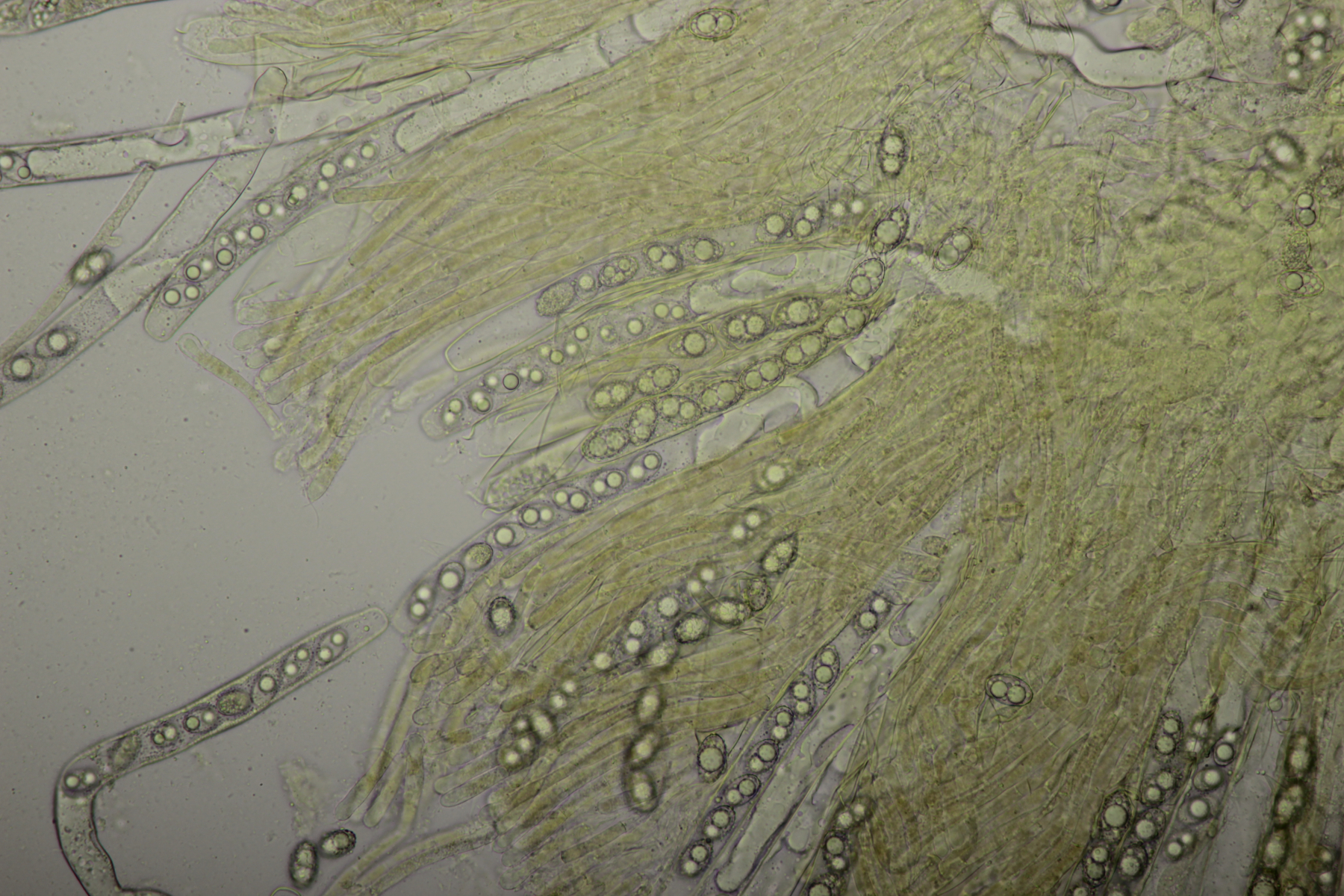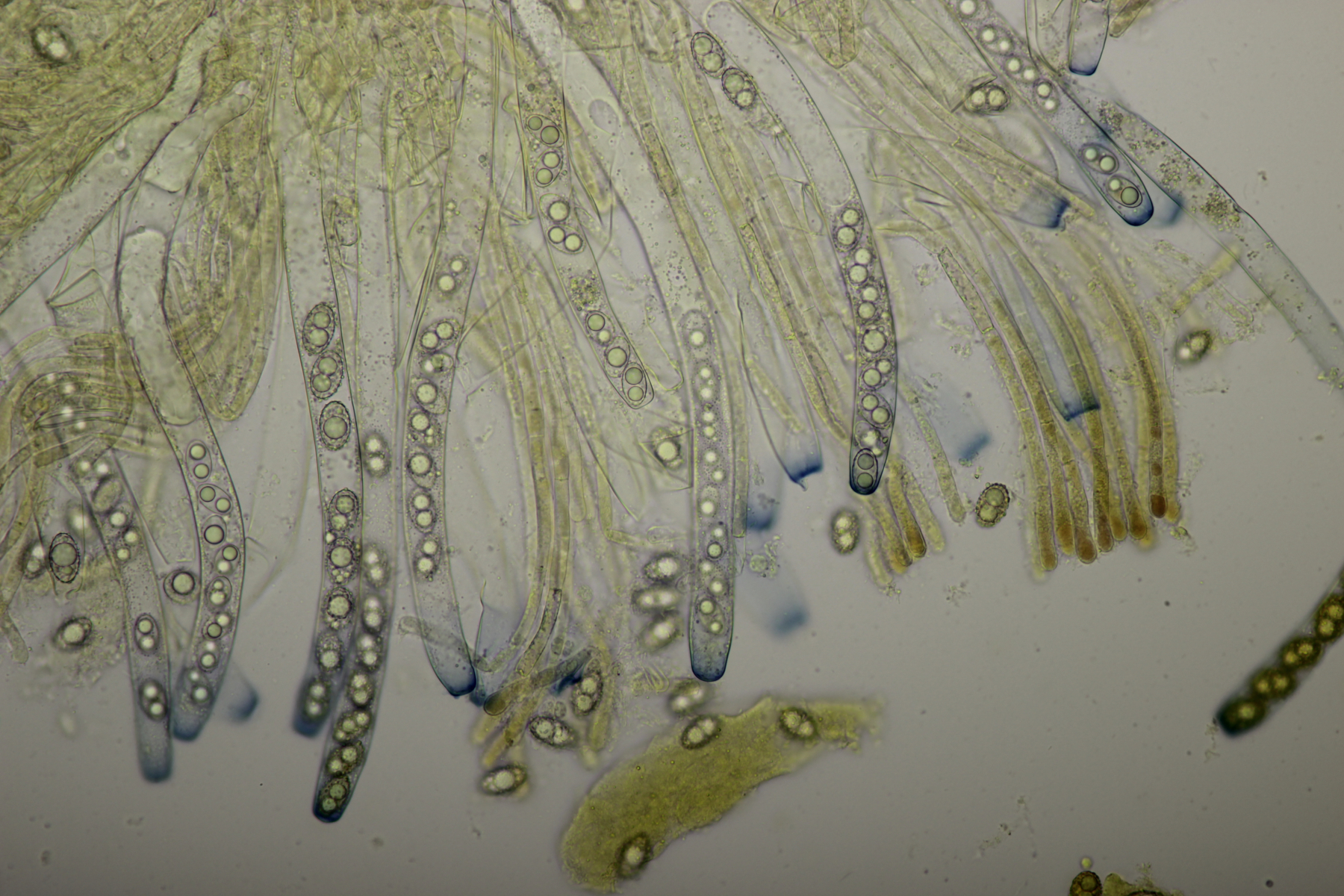 5. Eine gelbmilchende Peziza. Sporen muß ich noch ausmessen.