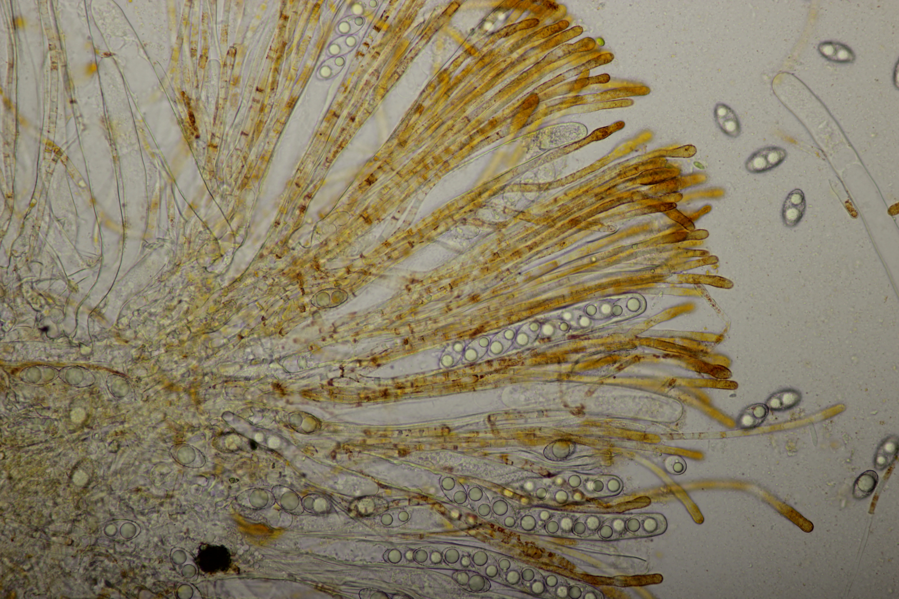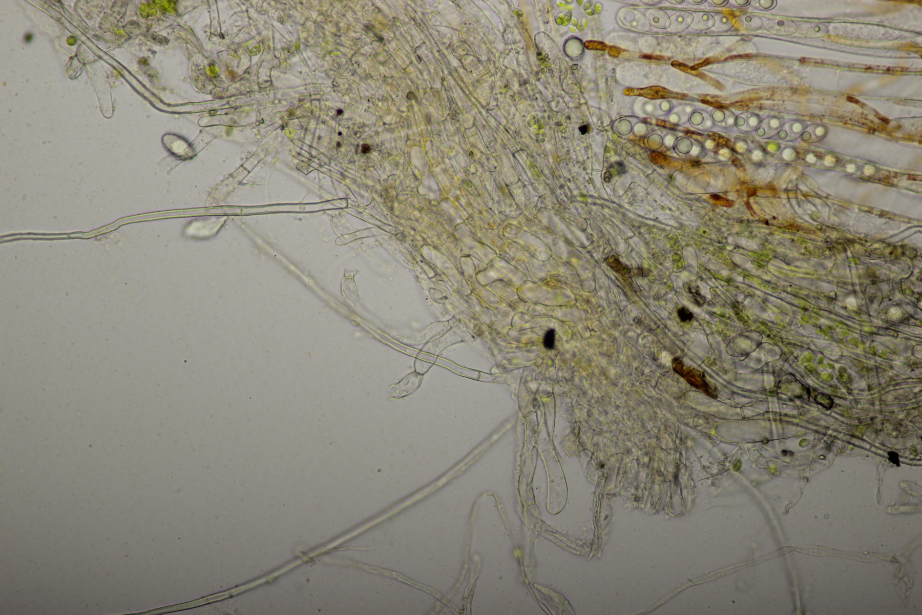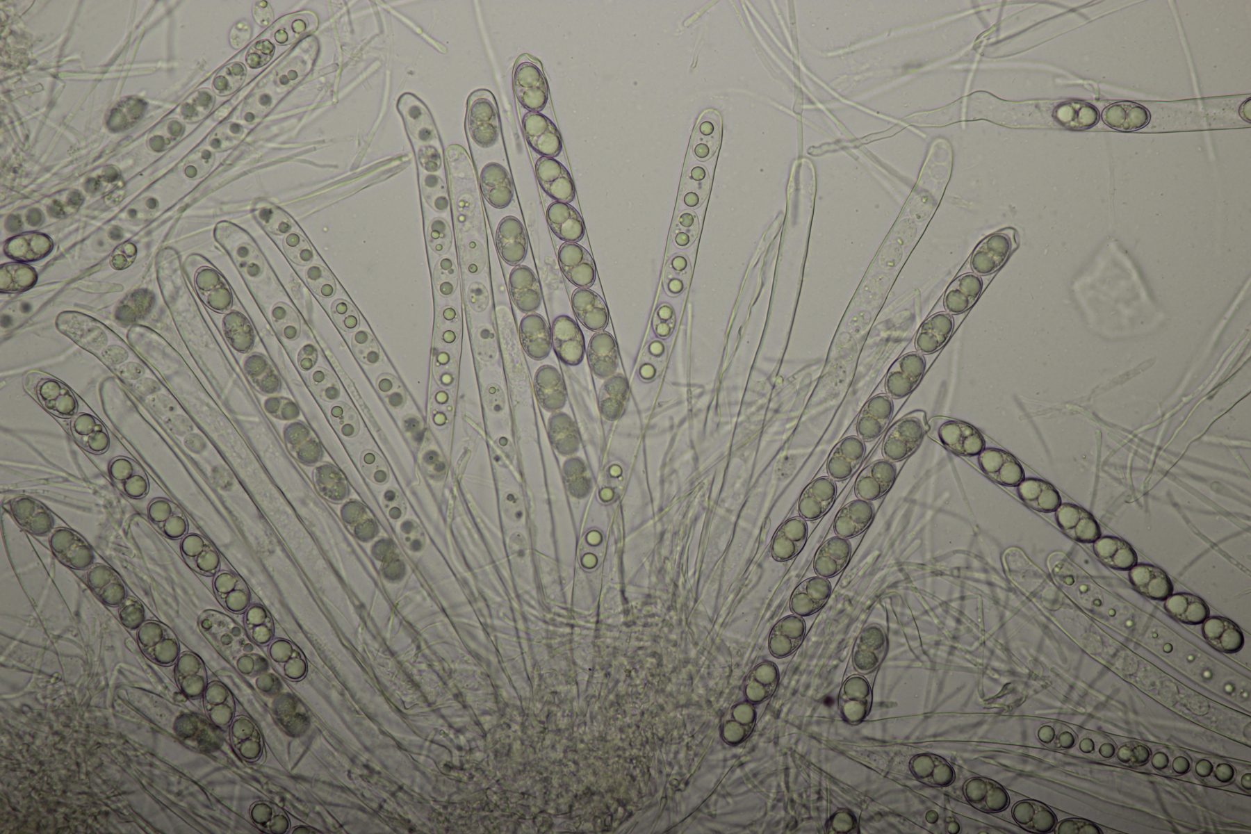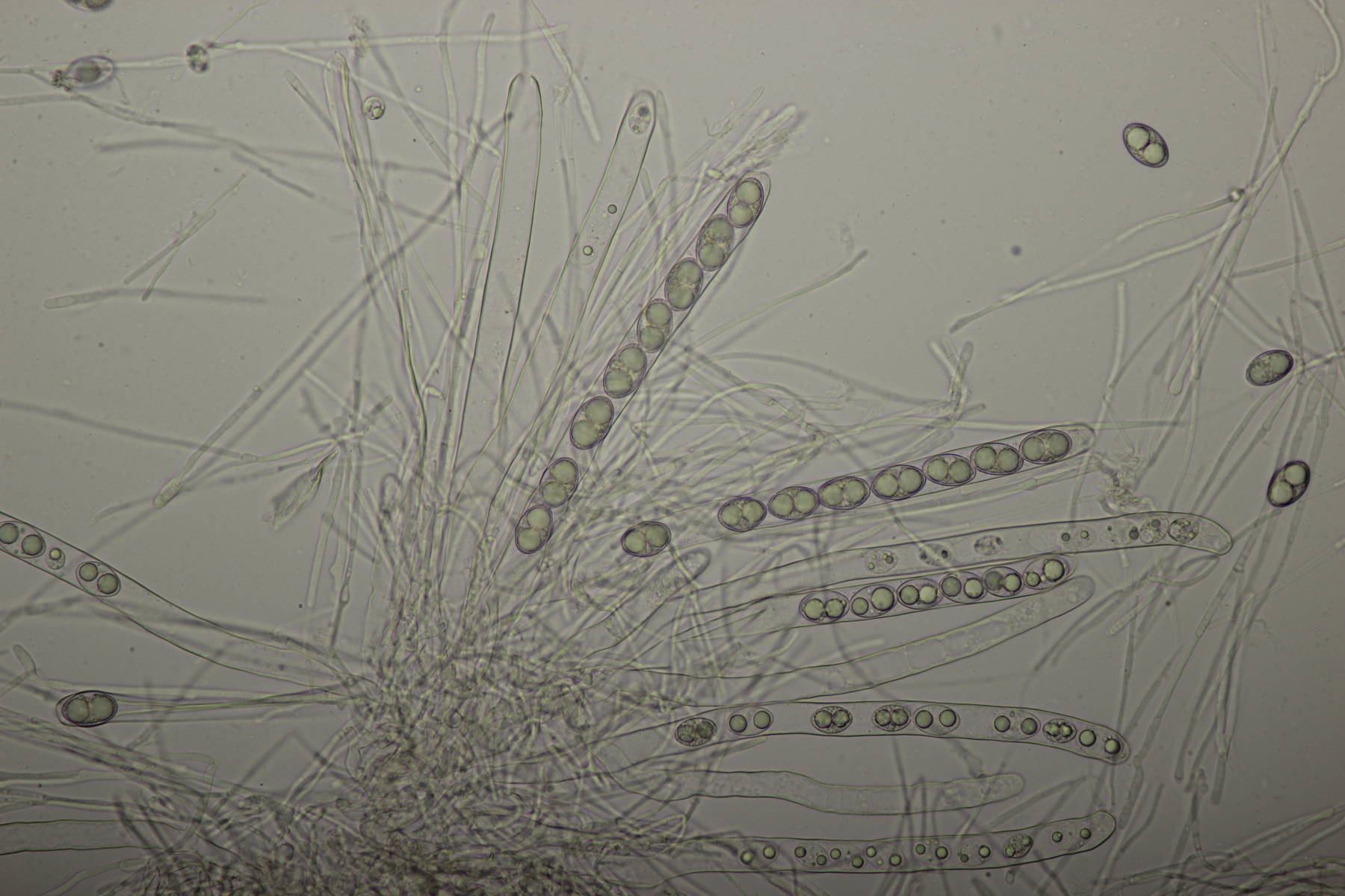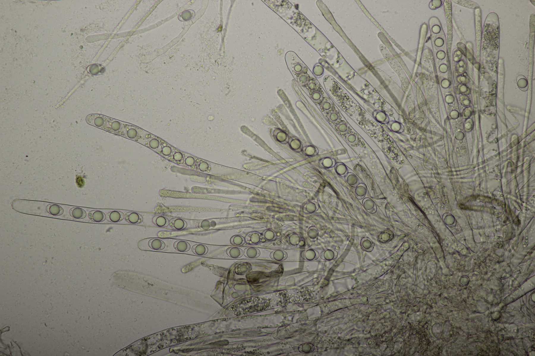 5. Eine gelbmilchende Peziza. Sporen muß ich noch ausmessen.