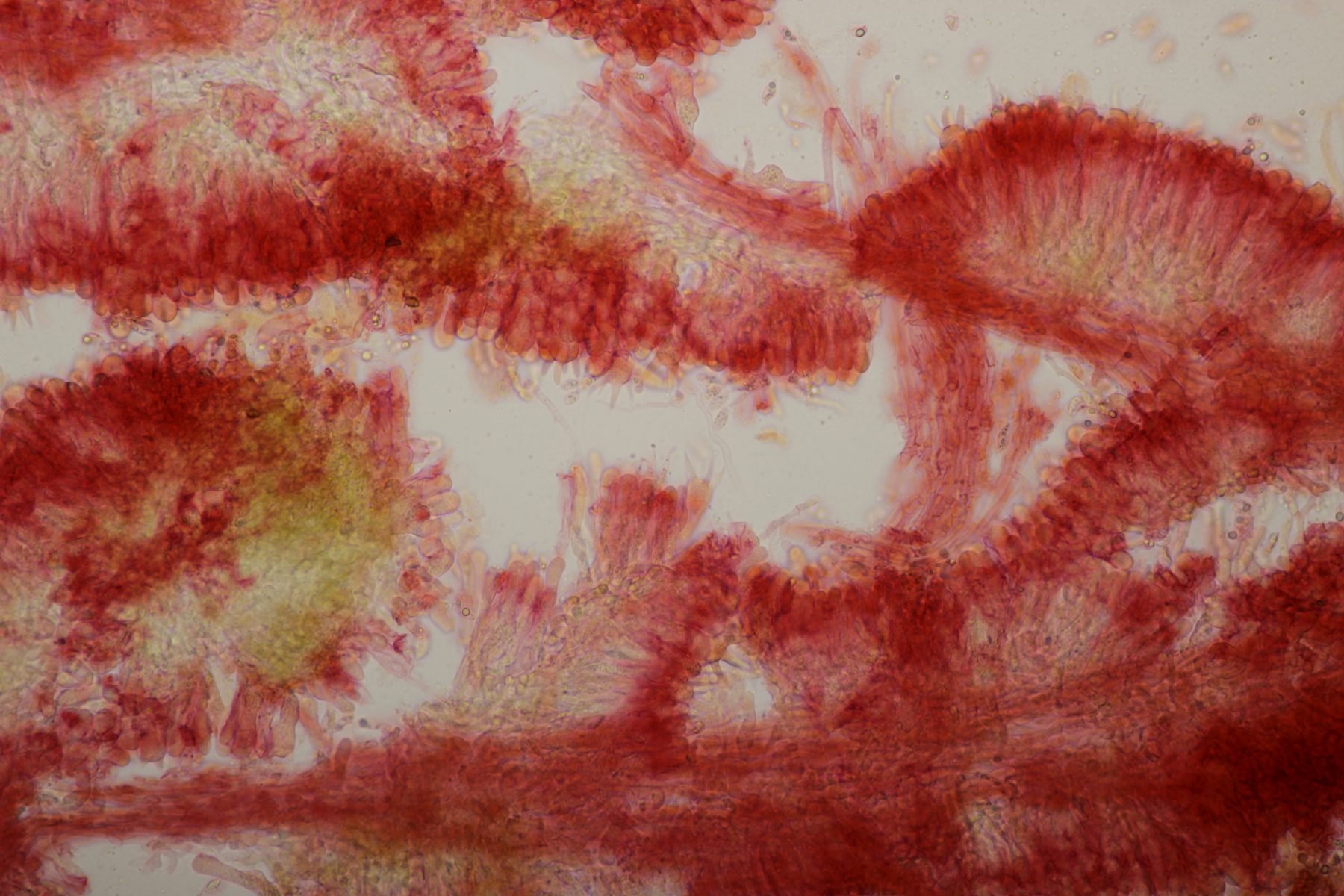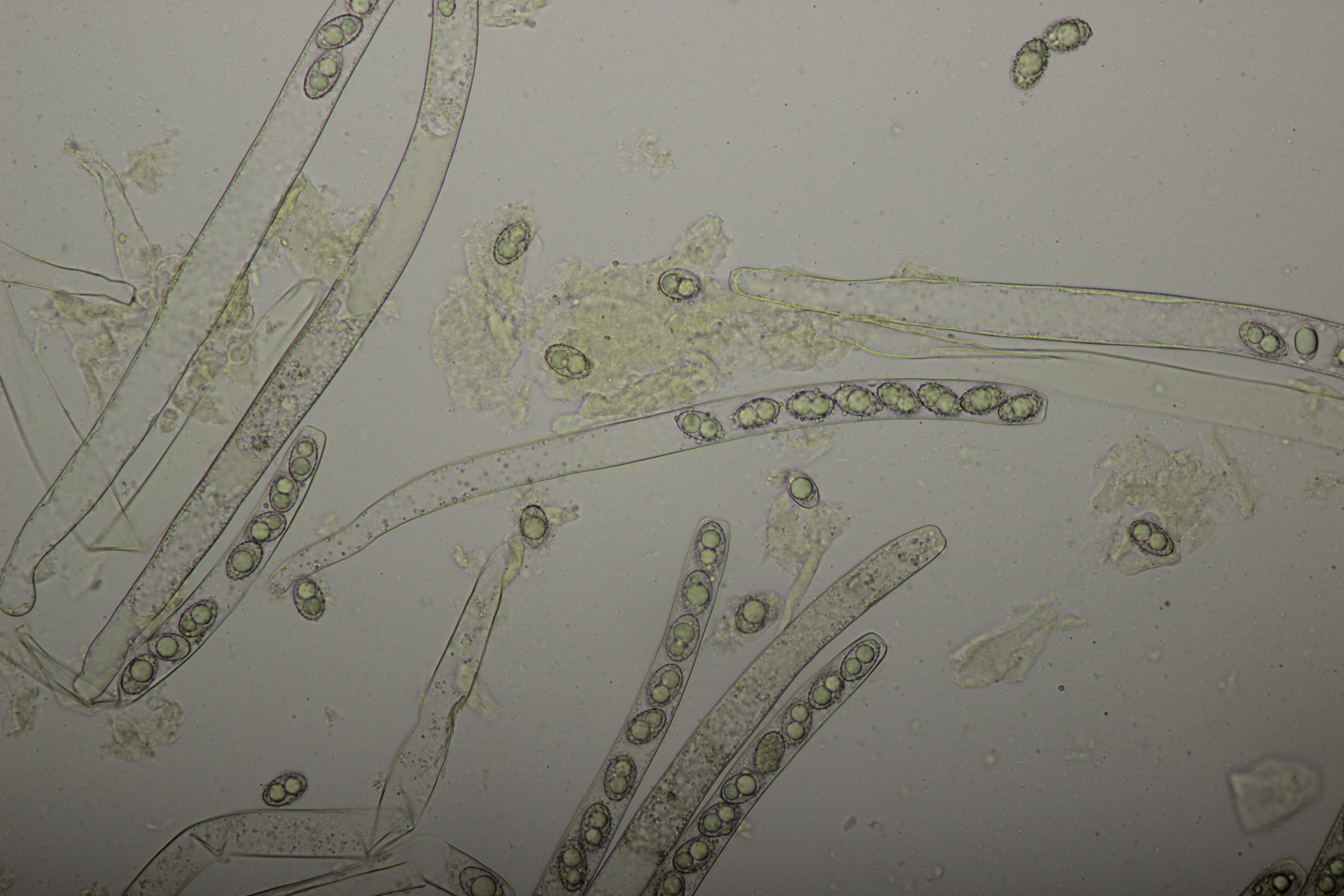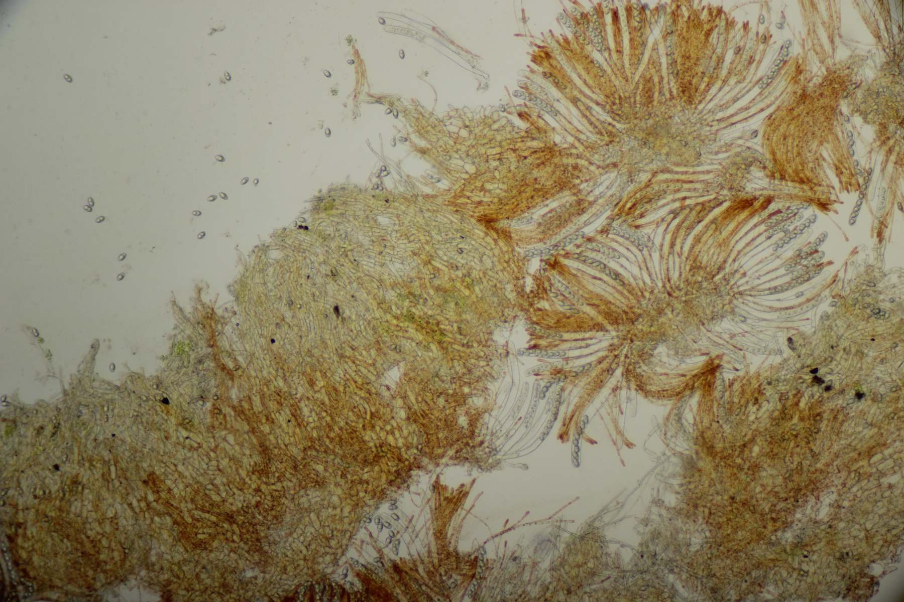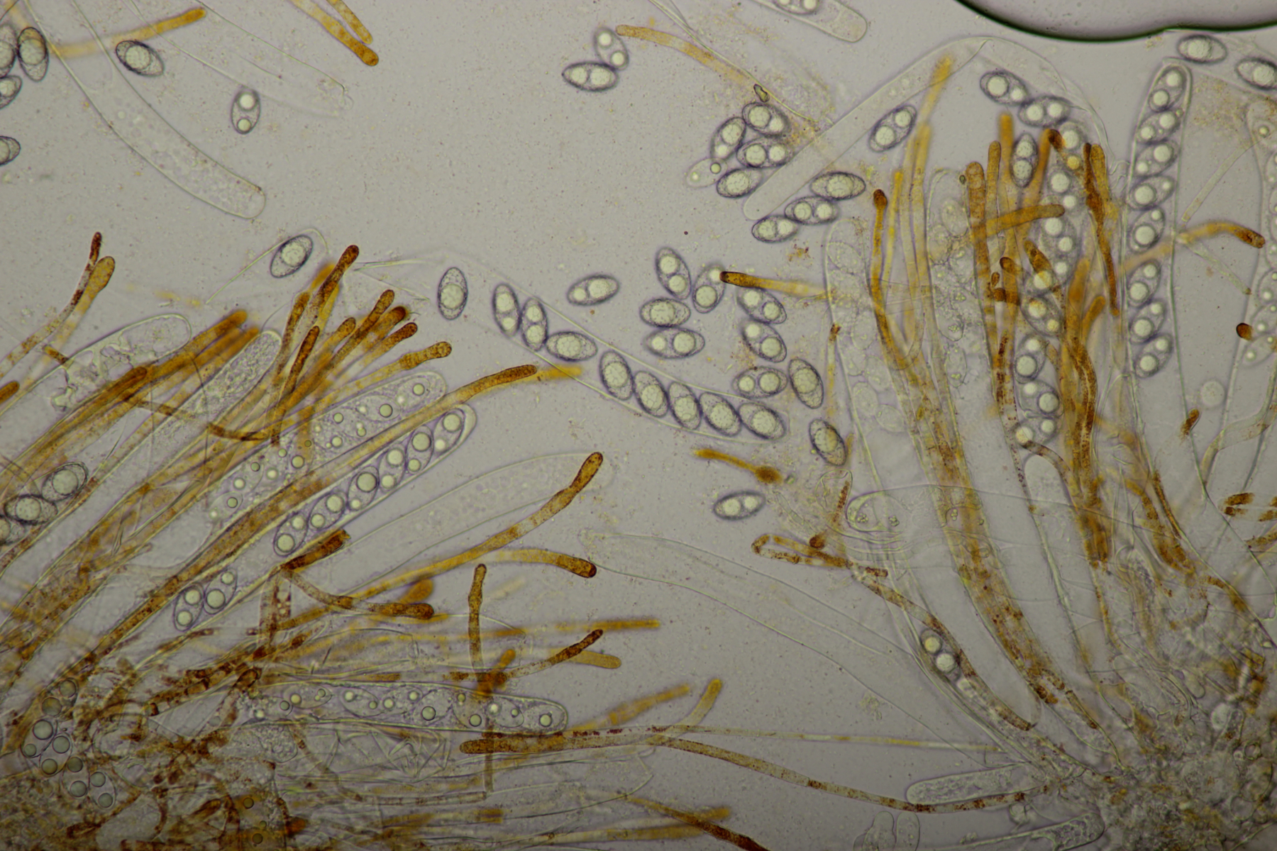 5. Eine gelbmilchende Peziza. Sporen muß ich noch ausmessen.